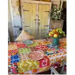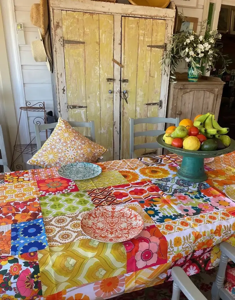 All the 70s vibes corralled into one seriously good-looking tablecloth! Designed by Western Australia’s own Anna Chandler, this orange patchwork printed design is inspired by her collection of vintage fabrics and reimagined for modern homes.