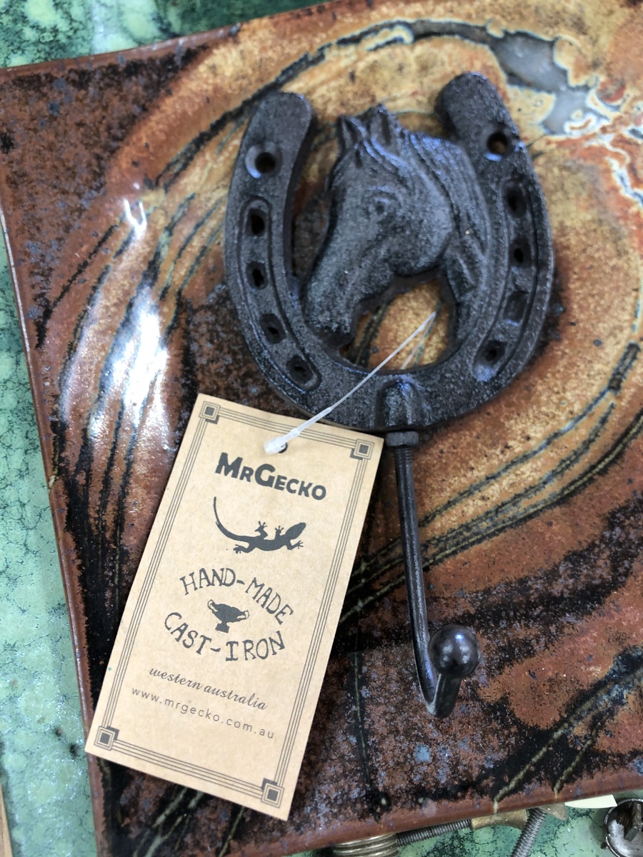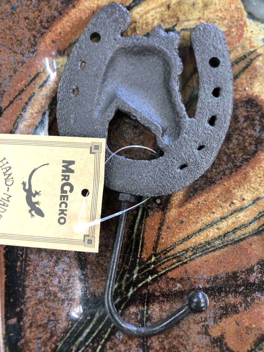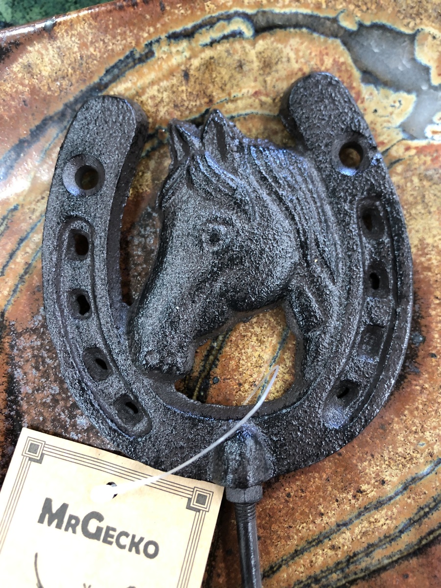 This single hook features a horseshoe and horse head - use as a coat hook, a key holder or just a wall decoration.