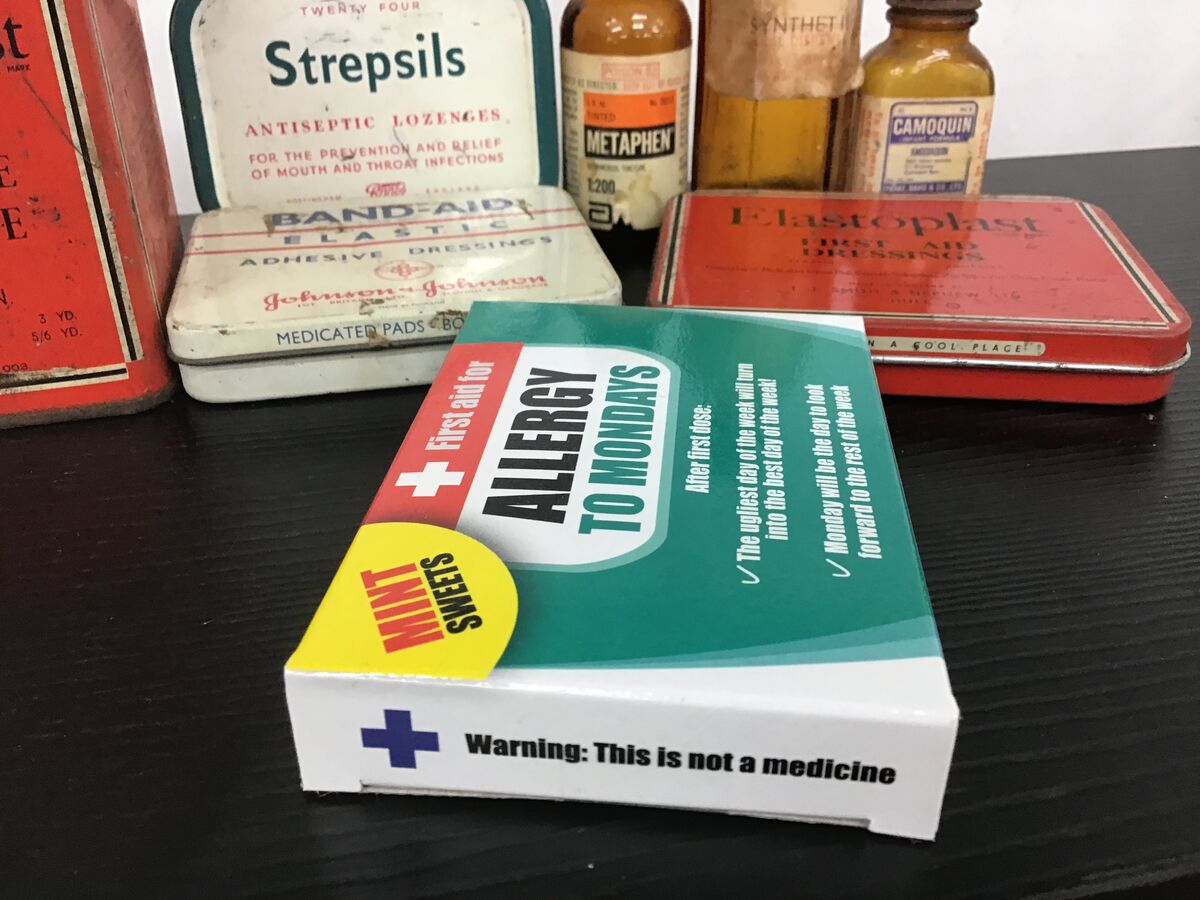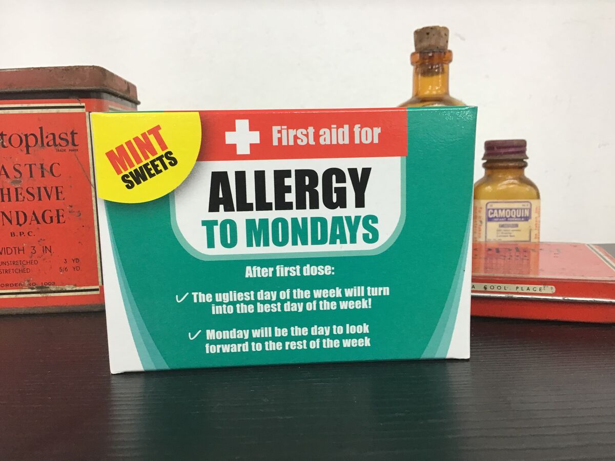 For the friend who starts complaining about Monday on Sunday afternoon. Allergy To Monday Sweet First Aid mints are the perfect prescription for Sunday scaries, weekday blues and that first alarm of the week. Designed to look like pharmacy medicine, they make a funny little pick me up for anyone who thinks Monday should be optional. Side effects may include laughter, eye rolling at motivational quotes and a slightly improved tolerance for Monday meetings.