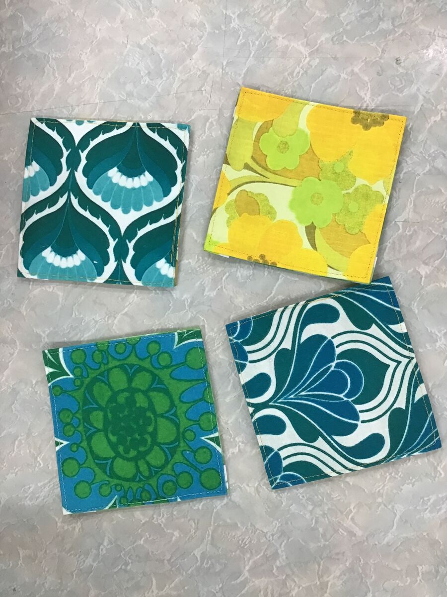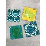 Inspired by vintage textiles, these reversible double sided canvas coasters are patchwork of lime, green and turquoise fragments - evoking the carefree Seventies when life was simpler.