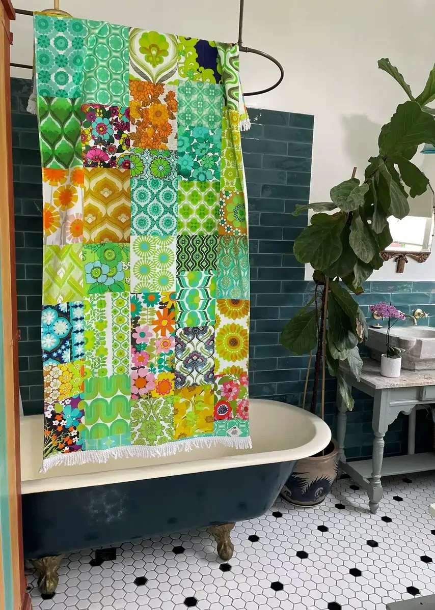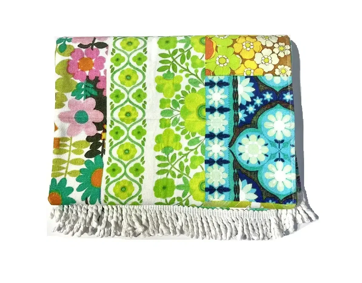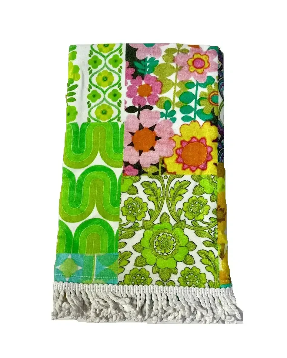 All the 70s vibes corralled into one fabulous beach towel. Designed by Western Australia’s own Anna Chandler, this green patchwork print is inspired by her collection of vintage fabrics. Finished with fringed ends for extra retro flavour, it is practical for beach days but cute enough to double as a picnic or poolside throw.