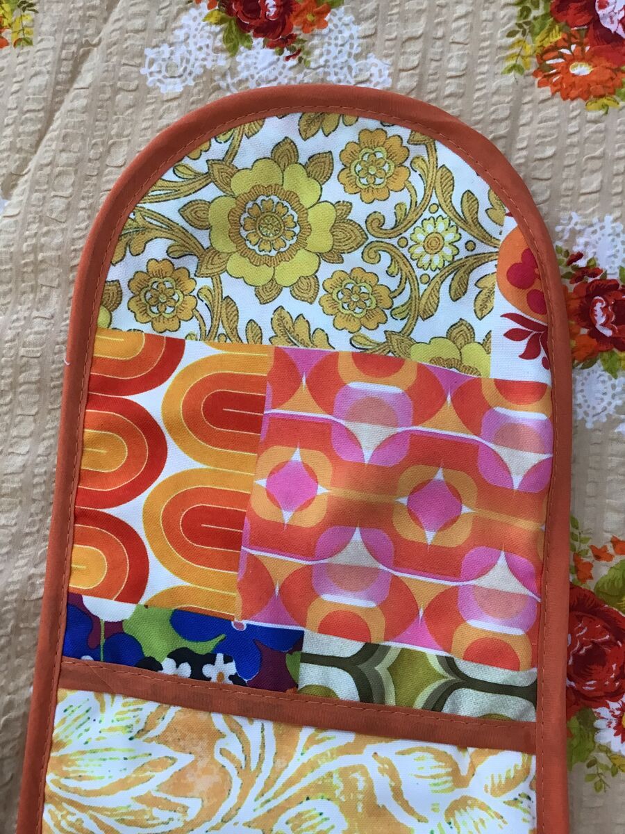 All the 70s vibes corralled into one seriously good-looking double oven glove! Designed by Western Australia’s own Anna Chandler, this orange patchwork print is inspired by her collection of vintage fabrics and reimagined for modern kitchens.