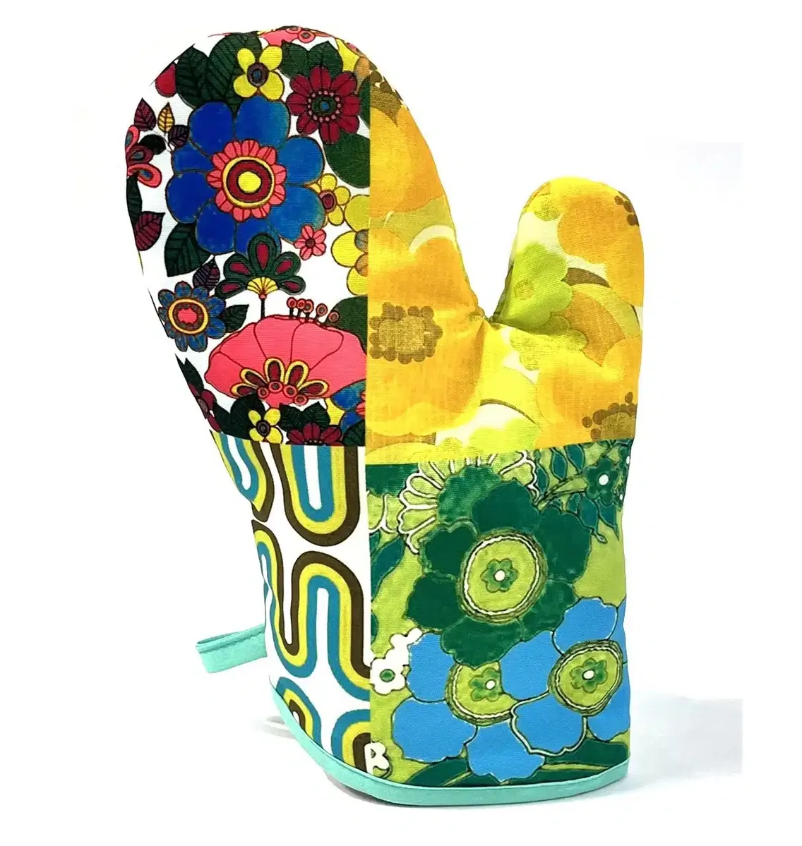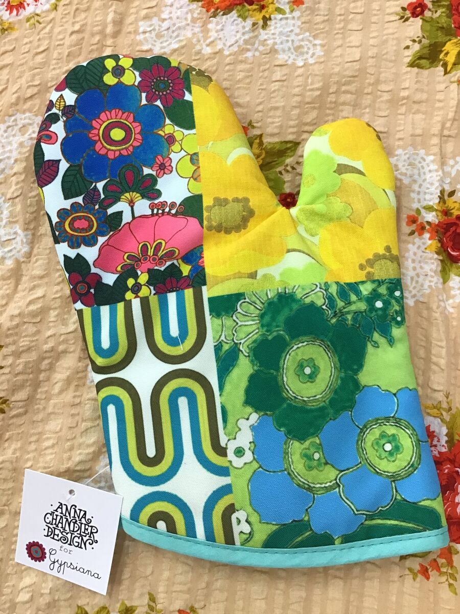 All the 70s vibes corralled into one seriously good-looking oven glove! Designed by Western Australia’s own Anna Chandler, this green patchwork print is inspired by her collection of vintage fabrics and reimagined for modern kitchens.