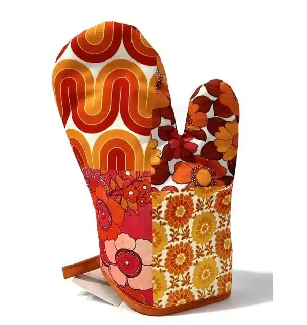 All the 70s vibes corralled into one seriously good-looking oven glove! Designed by Western Australia’s own Anna Chandler, this orange patchwork print is inspired by her collection of vintage fabrics and reimagined for modern kitchens.