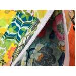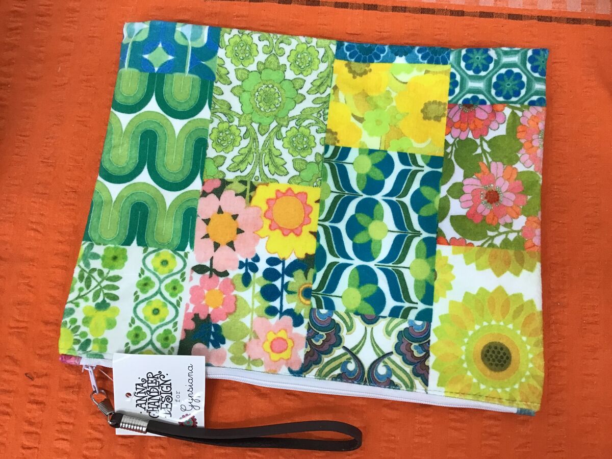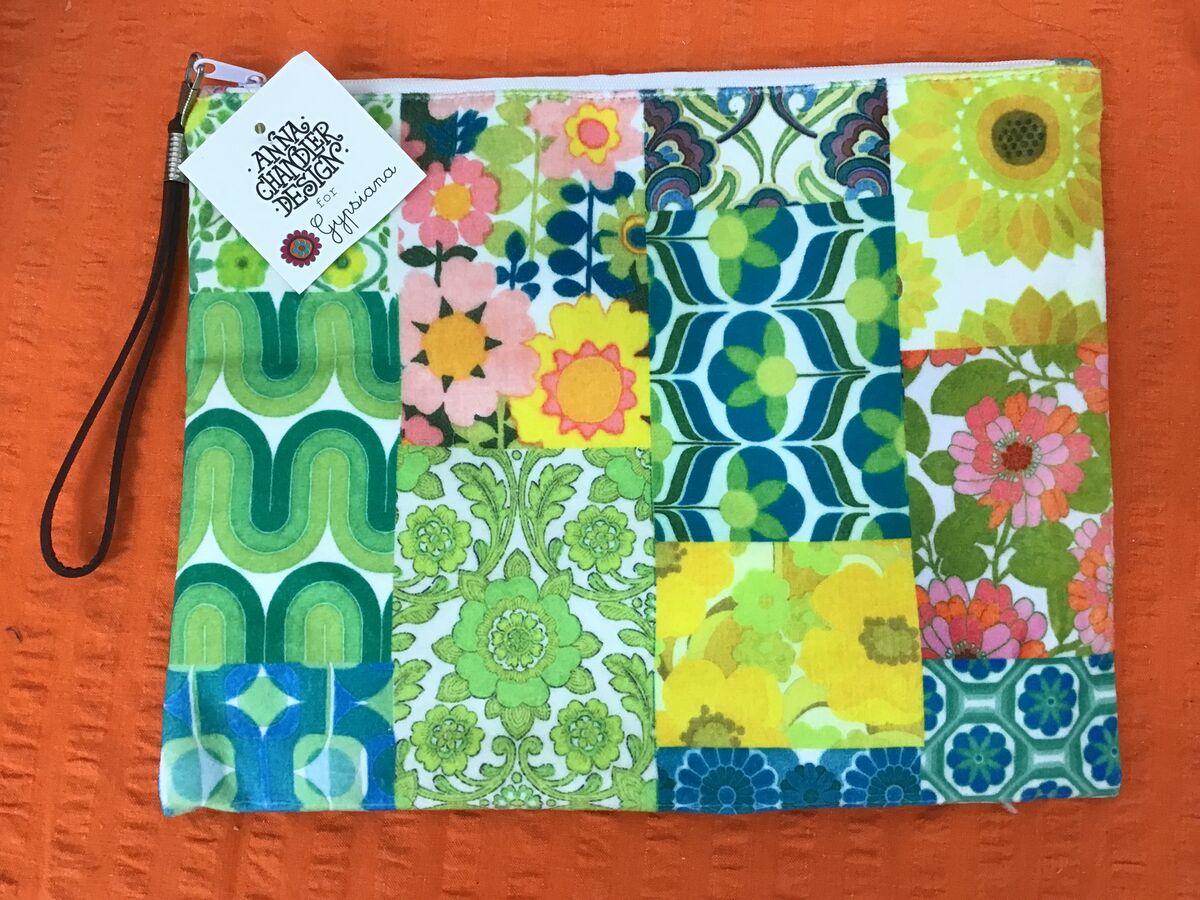 - Bold 1970s-inspired green patchwork colourway