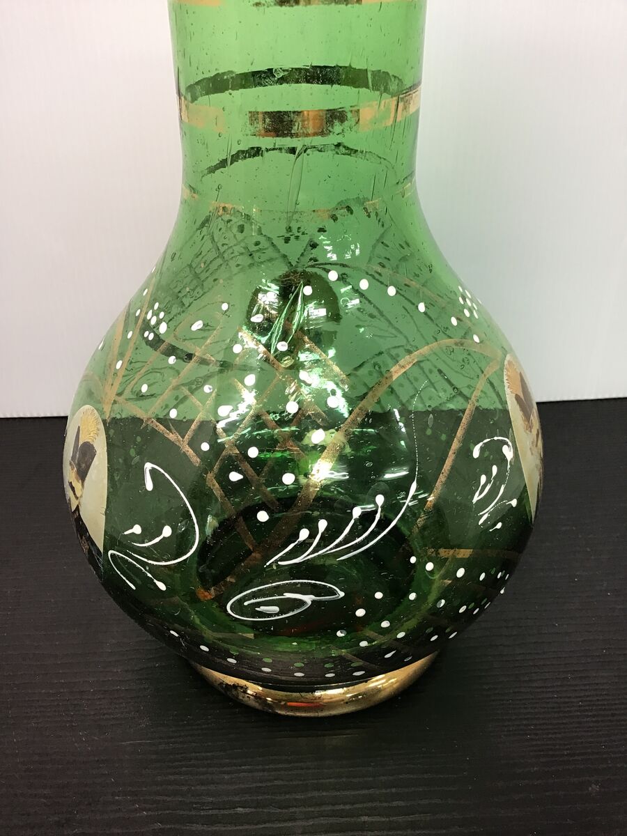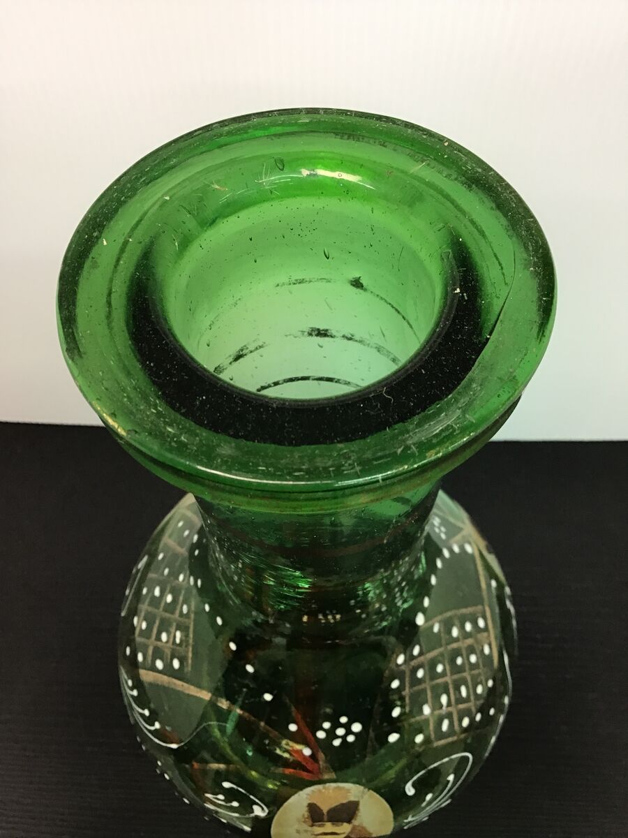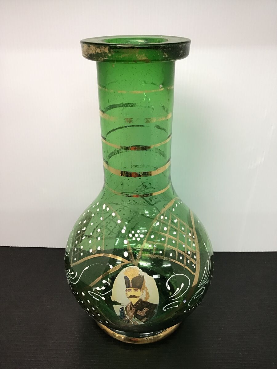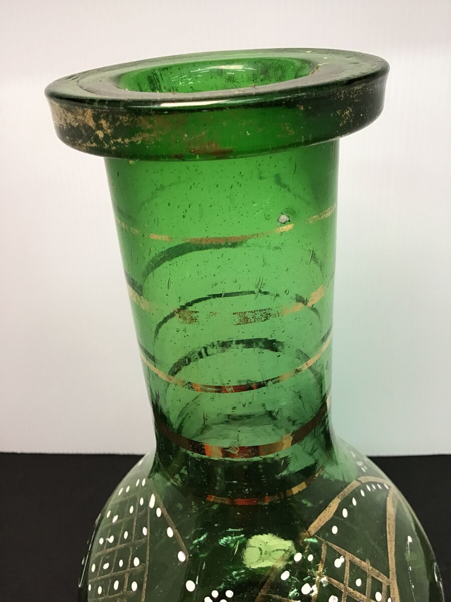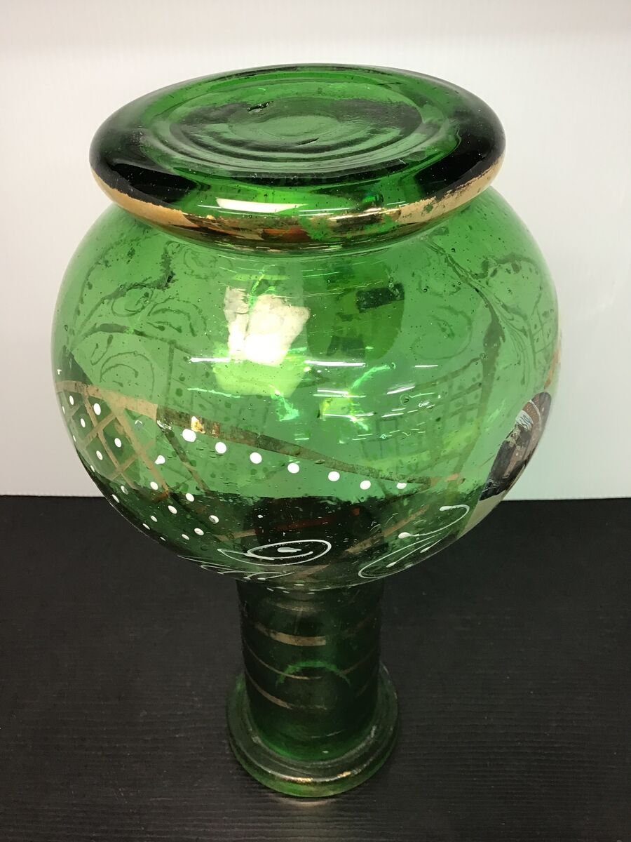 Antique emerald green glass hookah base from Persia: