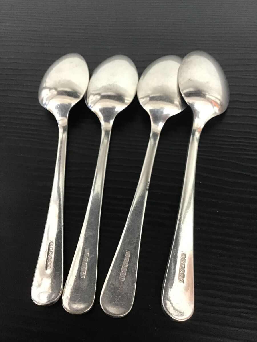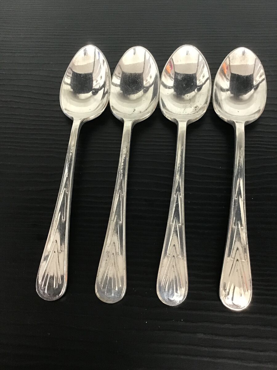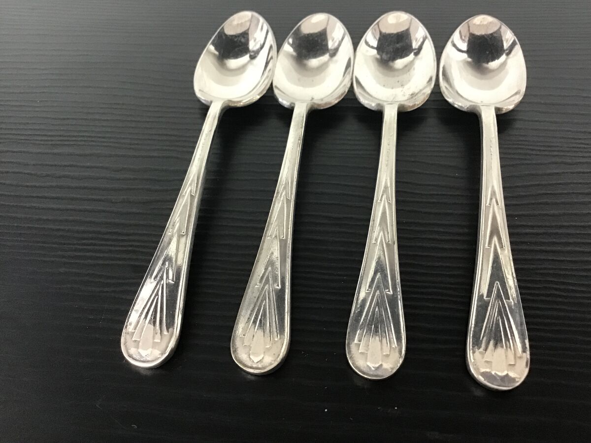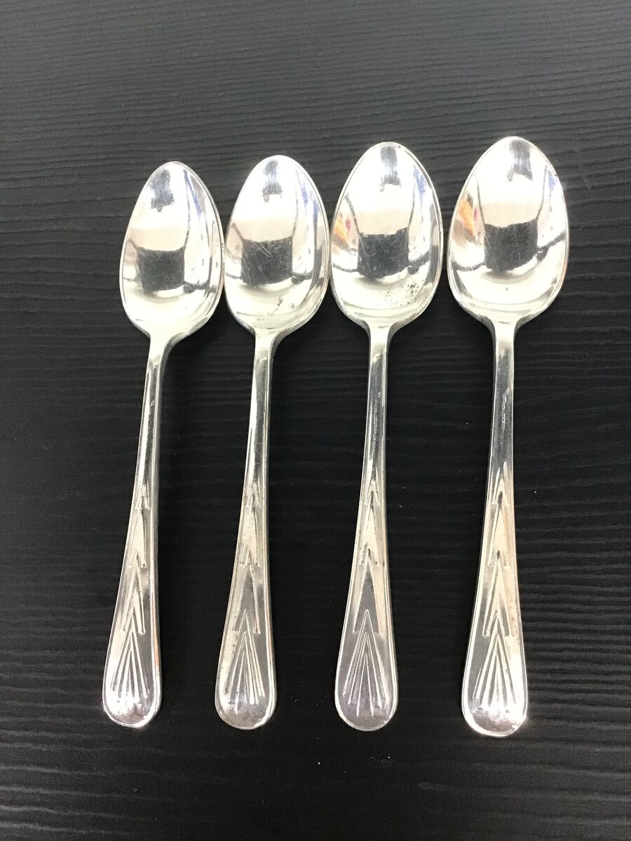 Lot of 4 silver plate teaspoons with Art Deco styling - the handles have a stepped chevron motif.