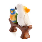 - Ceramic cockatoo and rainbow lorikeet shakers with a log perch (magnets keep them firmly in place)