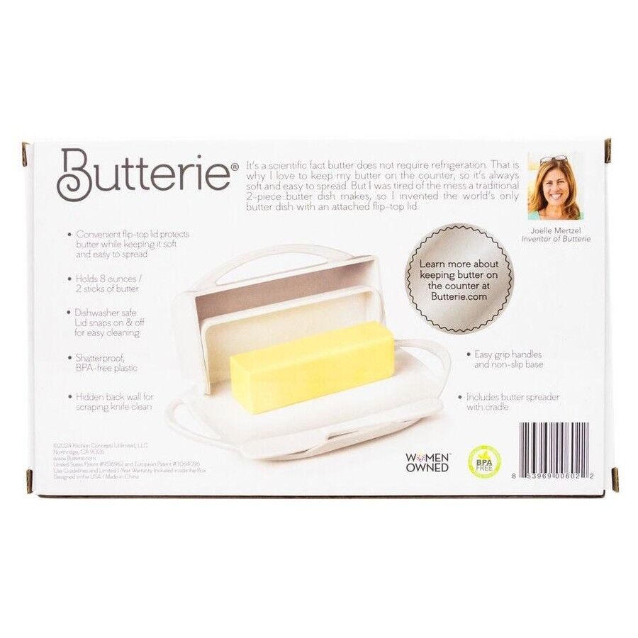- The Butterie is designed to sit on your kitchen counter, keeping tidy and your butter spreadable