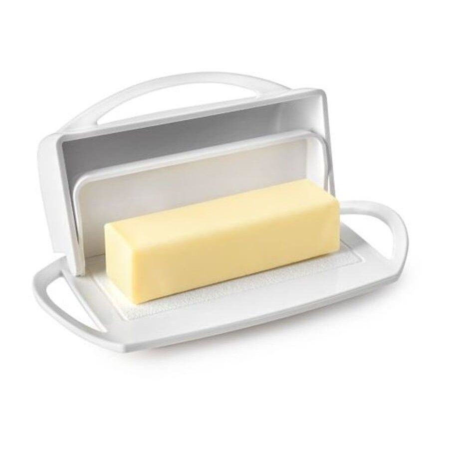 - The flip top lid of the Butterie stays with the dish and is a quick flick to open and close