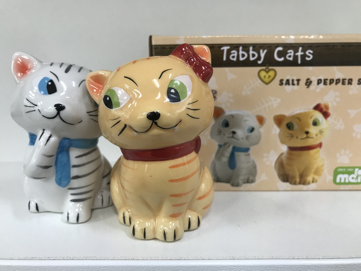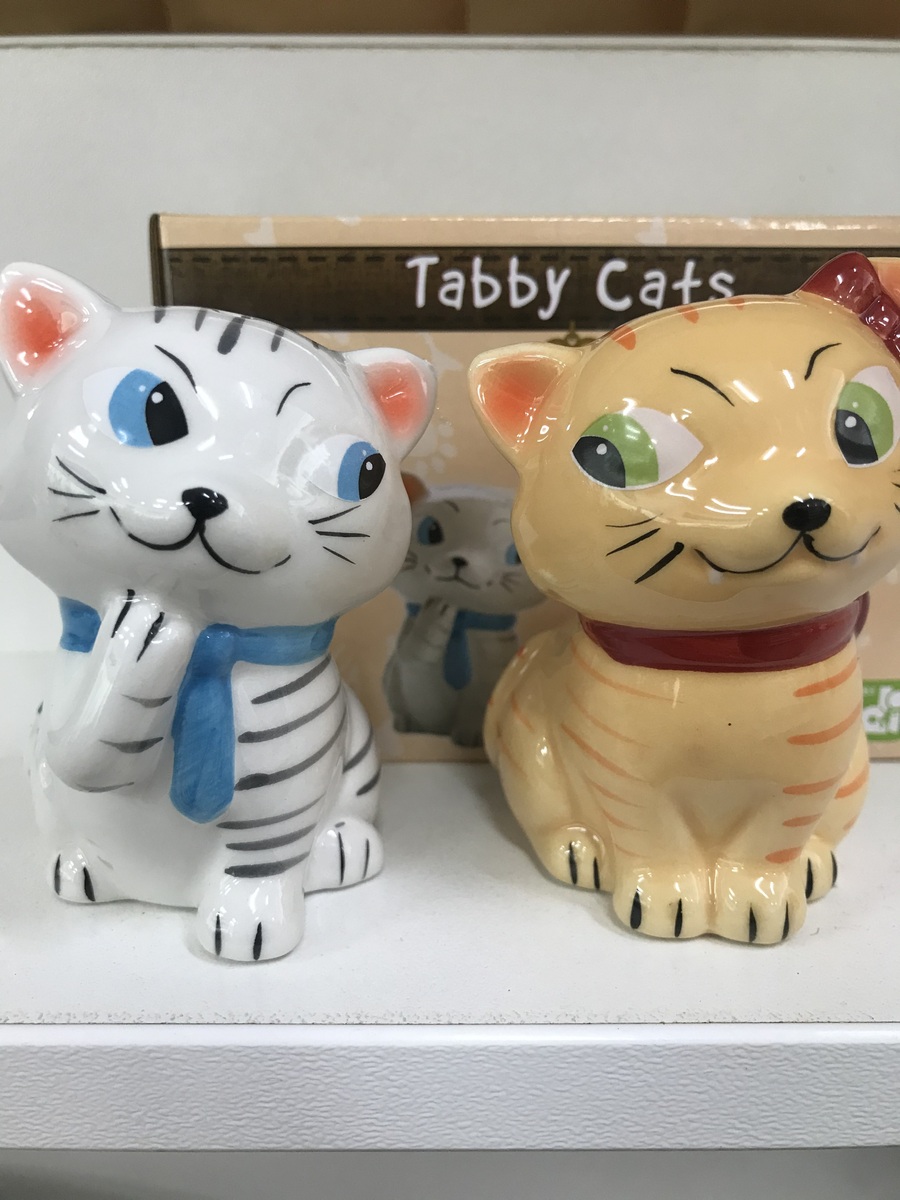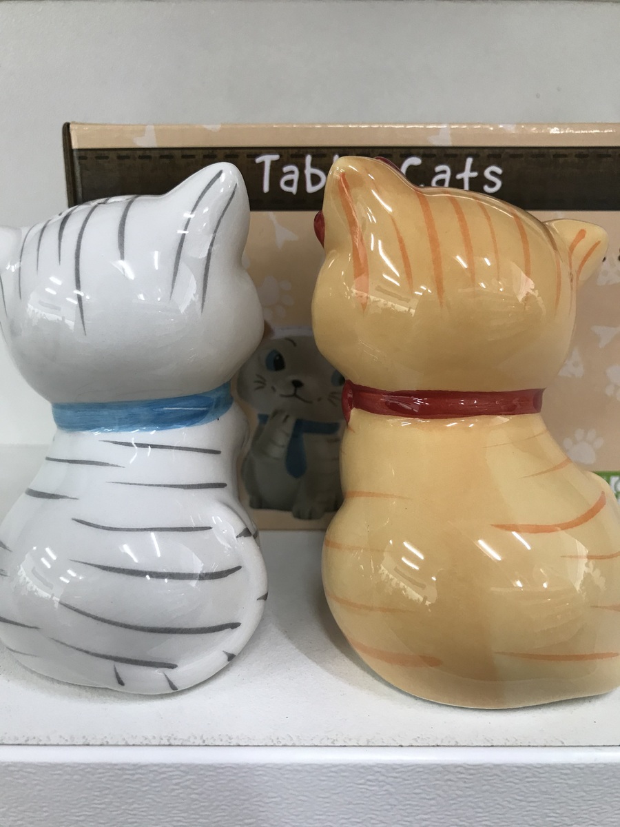 Ceramic cat salt and pepper shakers. A white and ginger tabby. Super cute.