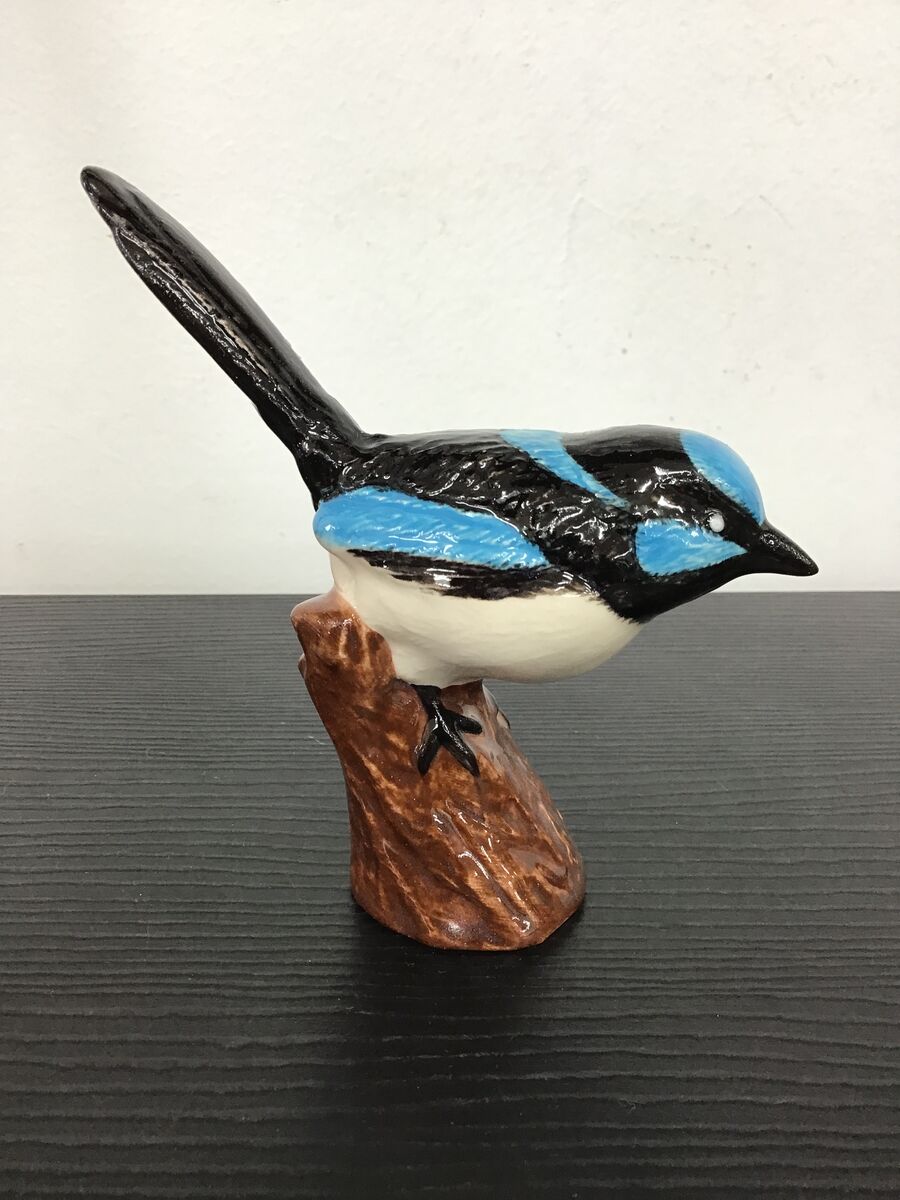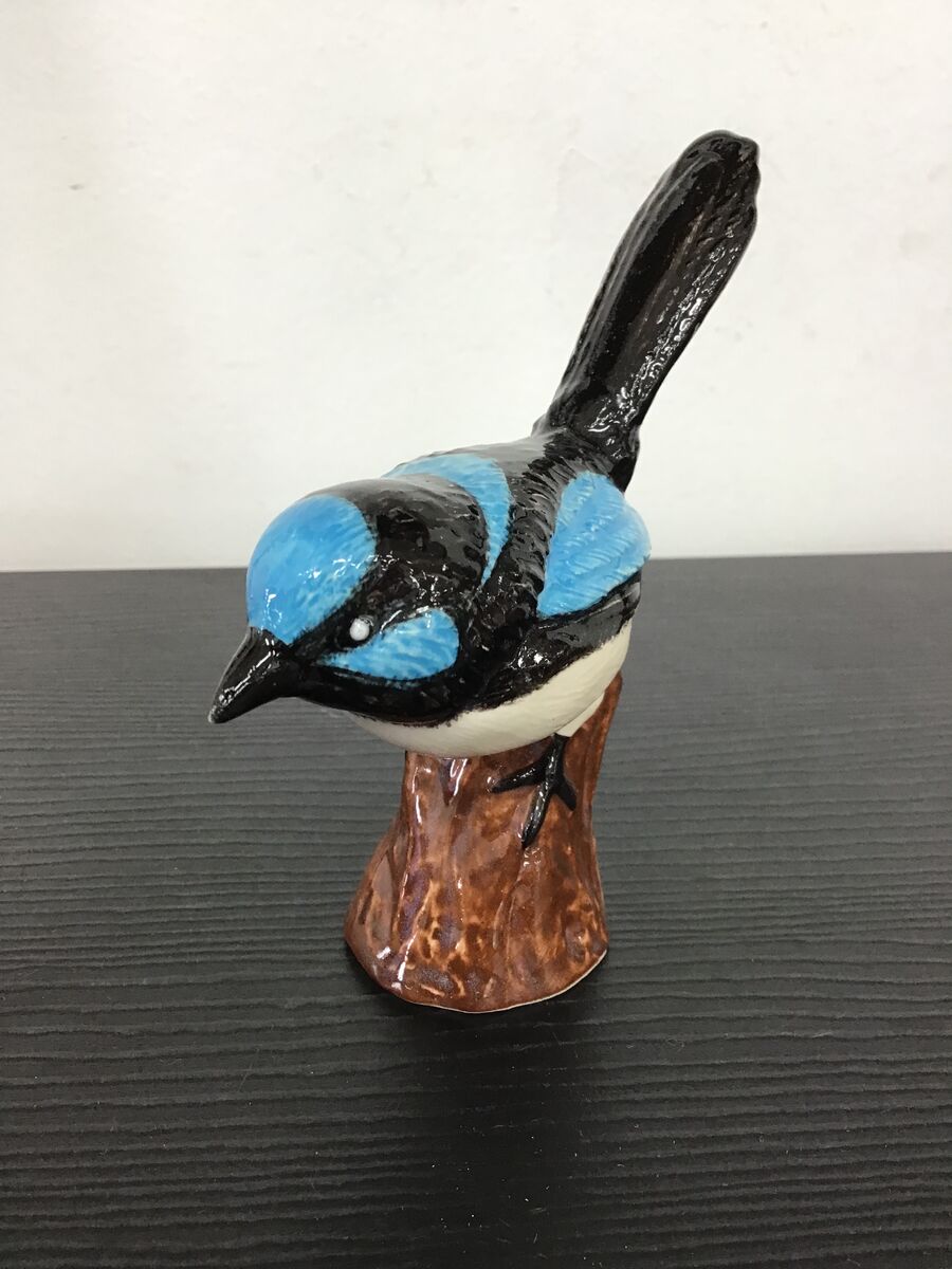 Ceramic blue wren ornament. Hand painted finish, very life-like.