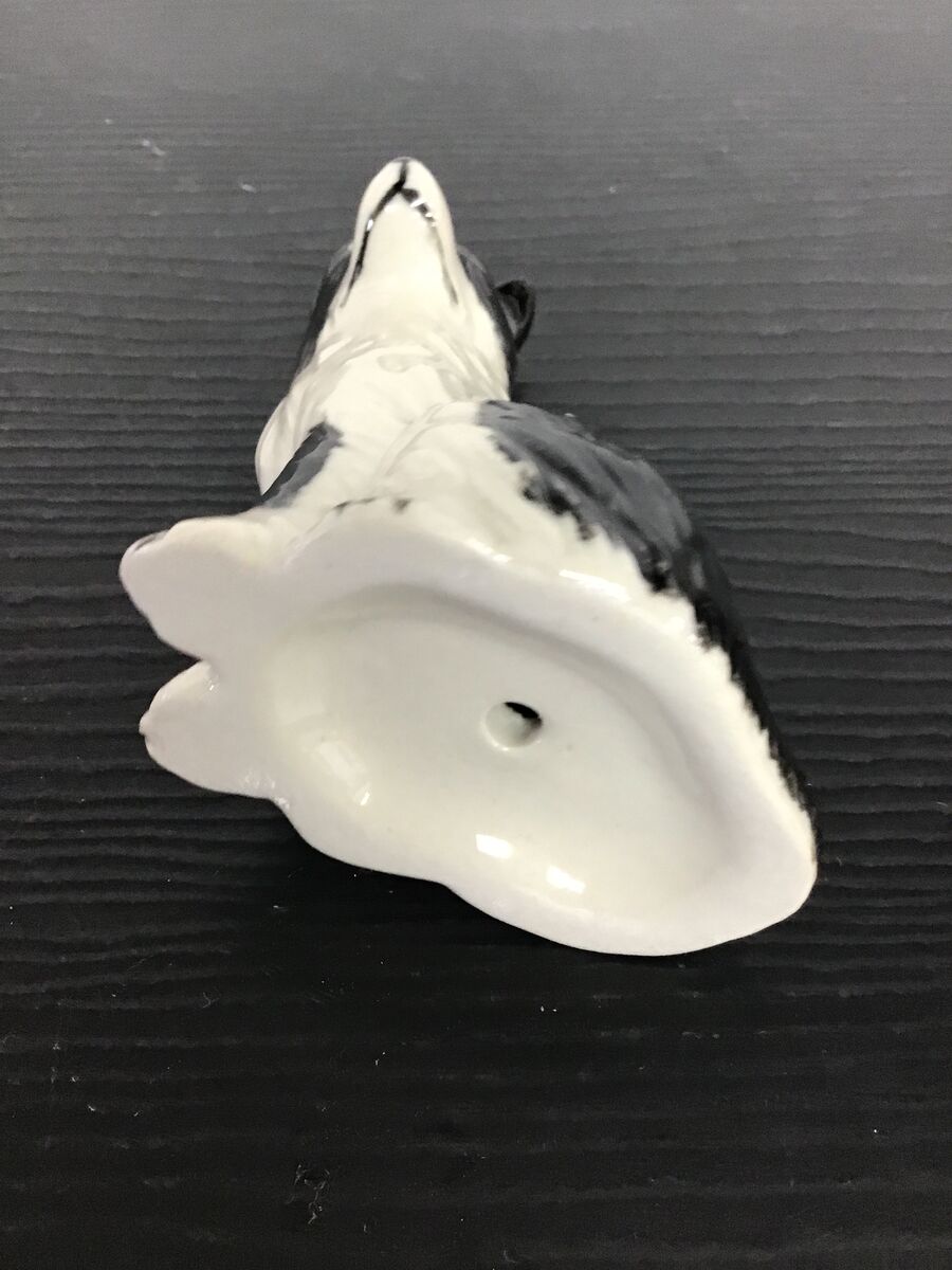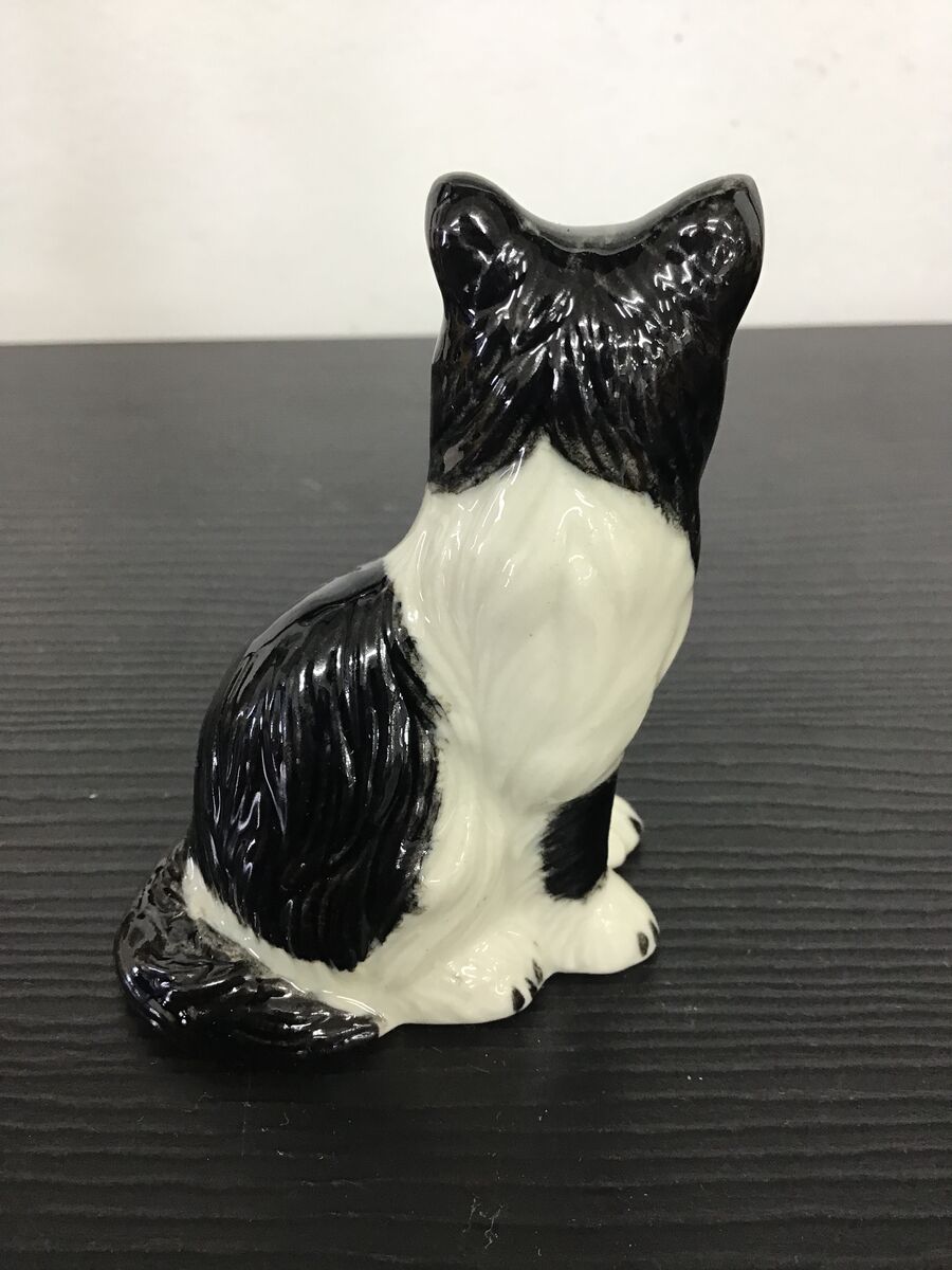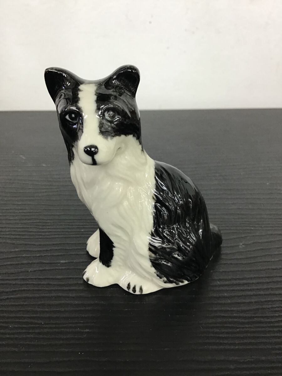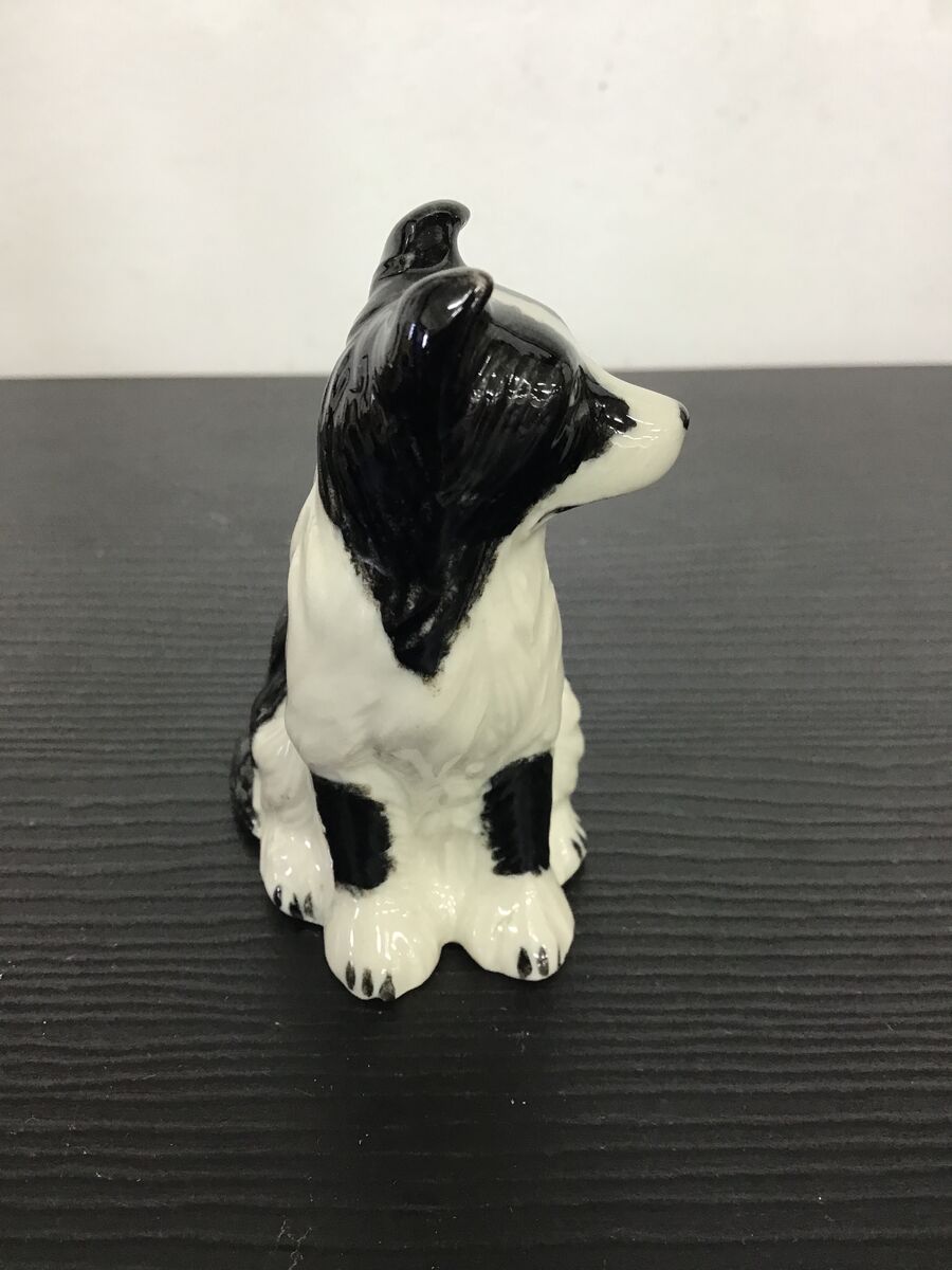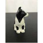 Ceramic Border Collie ornament - hand painted finish. Black and white colouring, posed sitting.