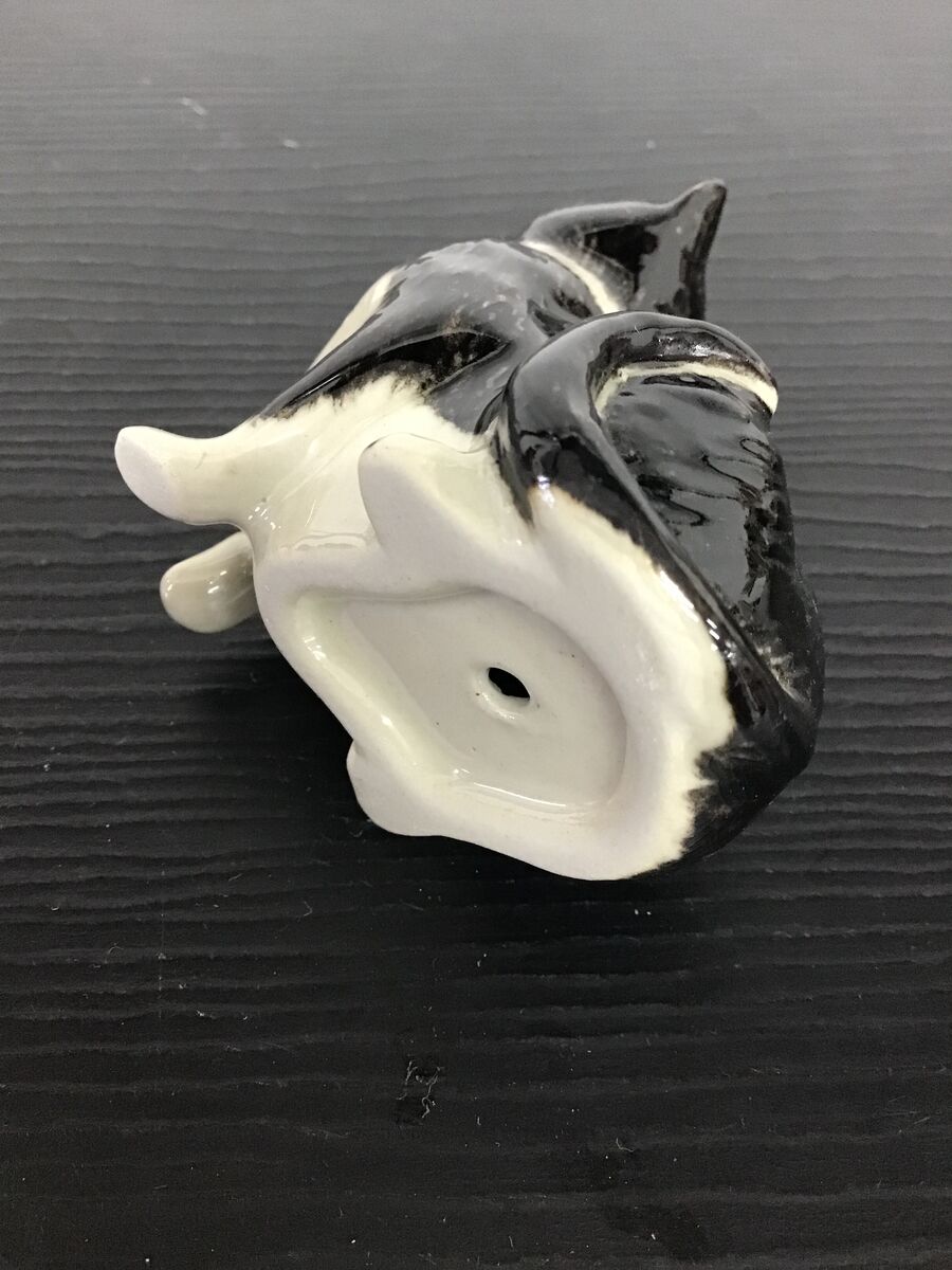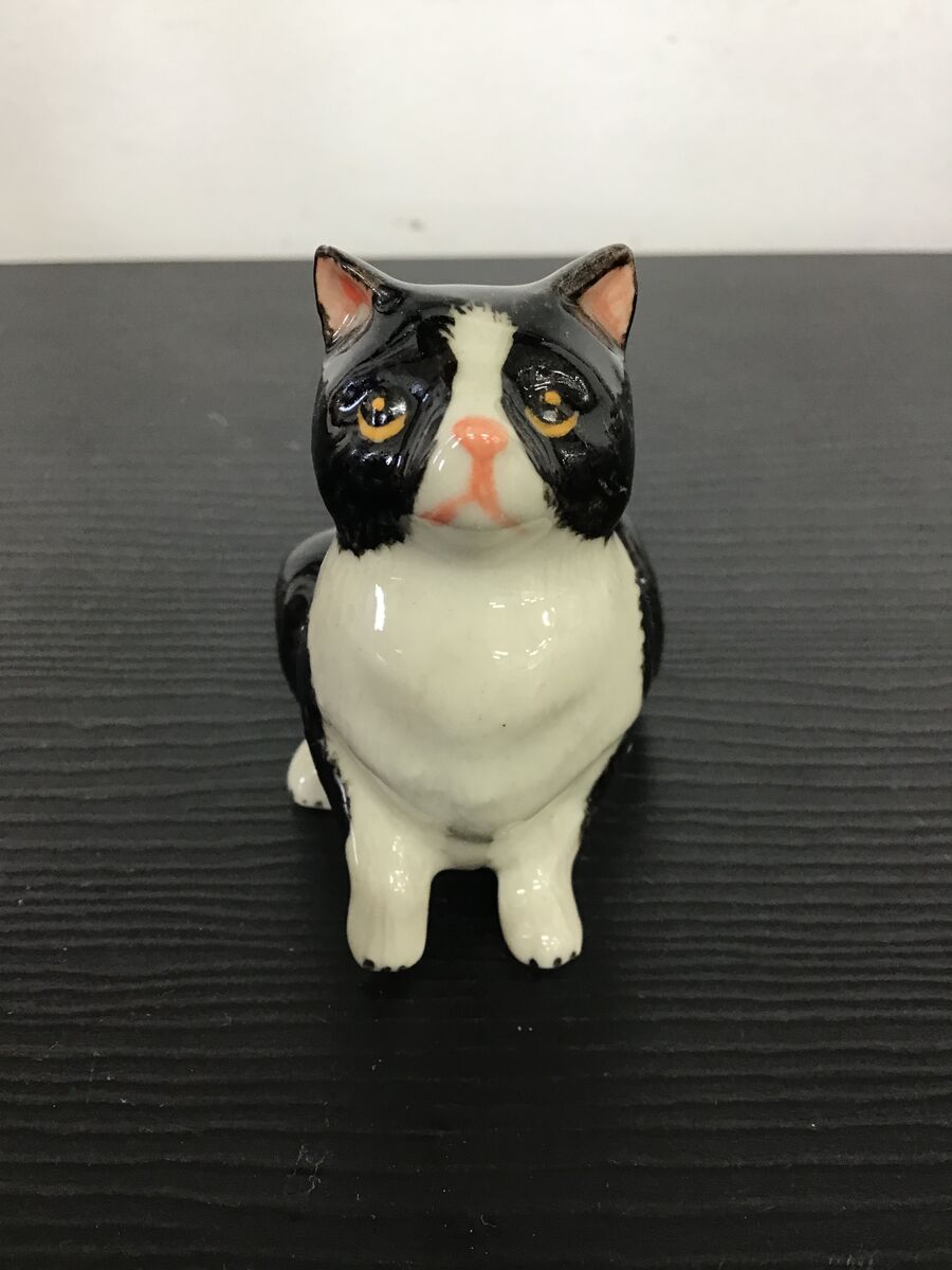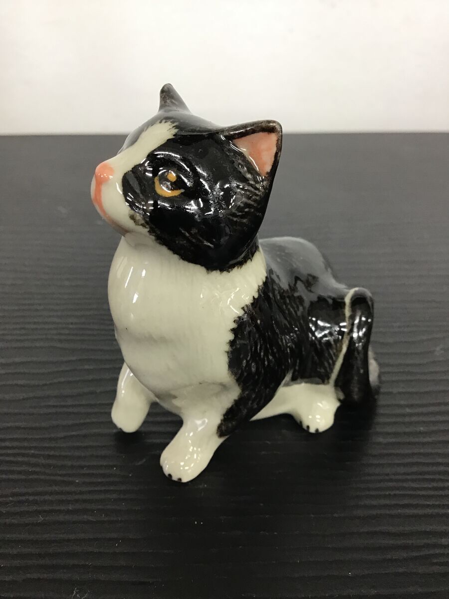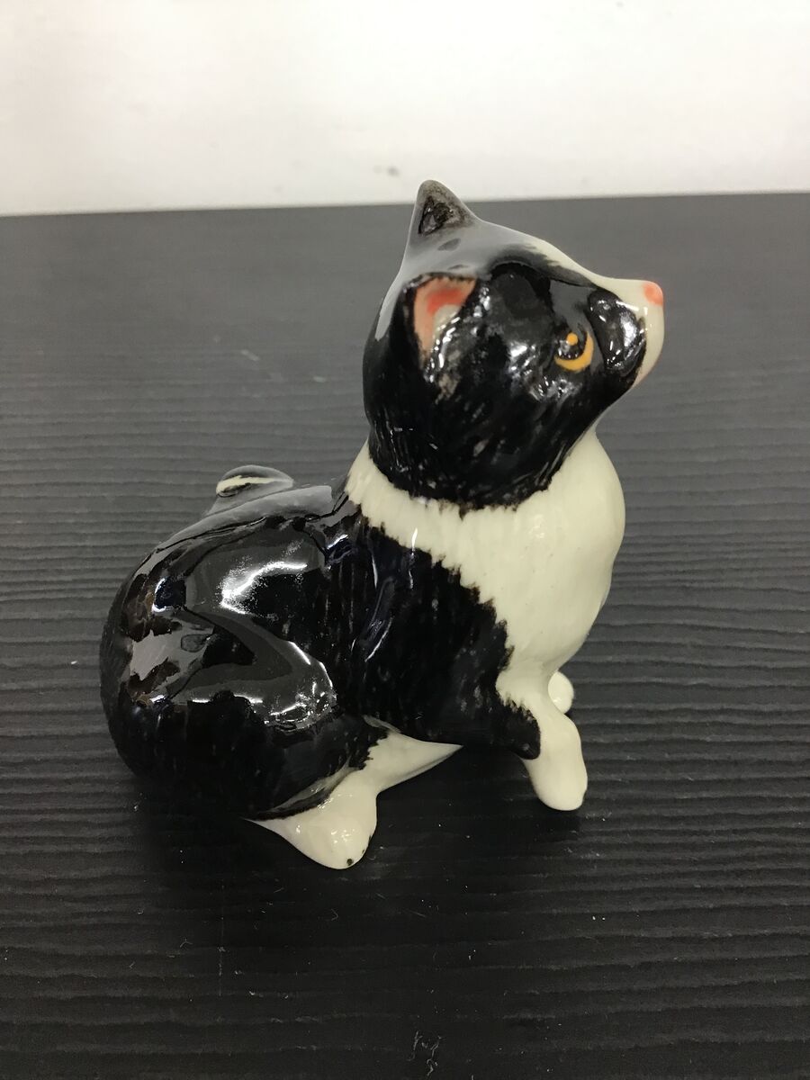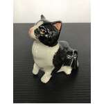 Small ceramic cat ornament - black and white colouring. Tiny but beautifully detailed with a hand painted finish.