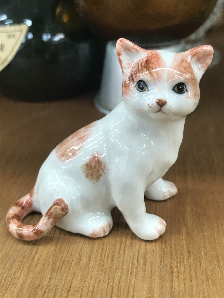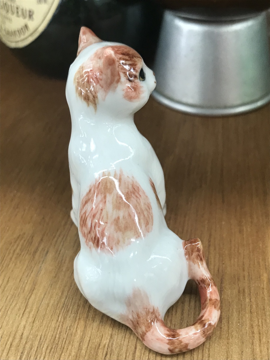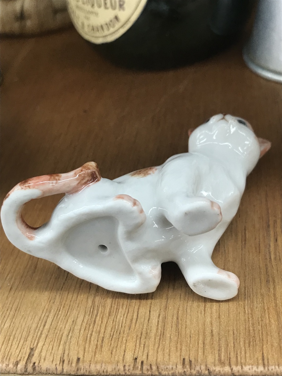 Small ceramic cat ornament - white and brown colouring. Tiny but beautifully detailed with a hand painted finish.