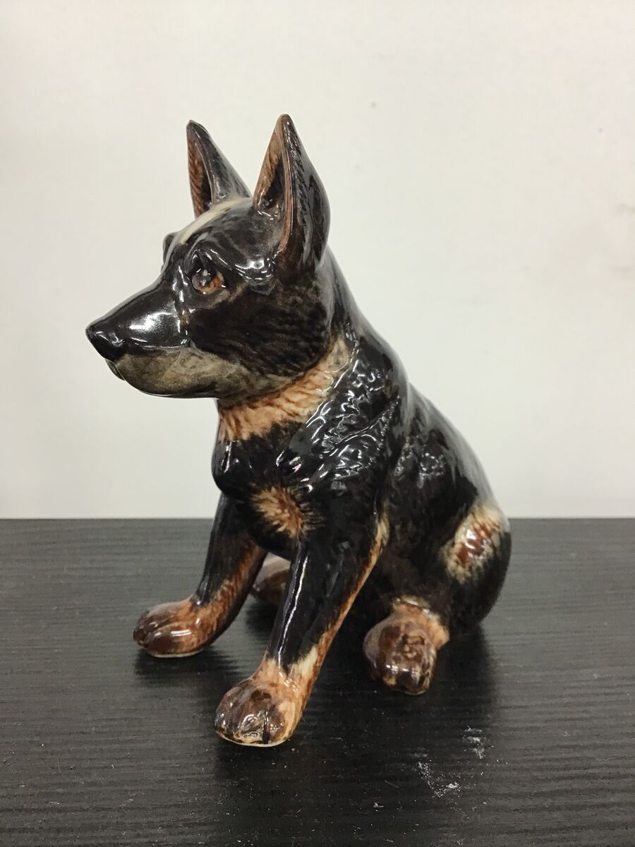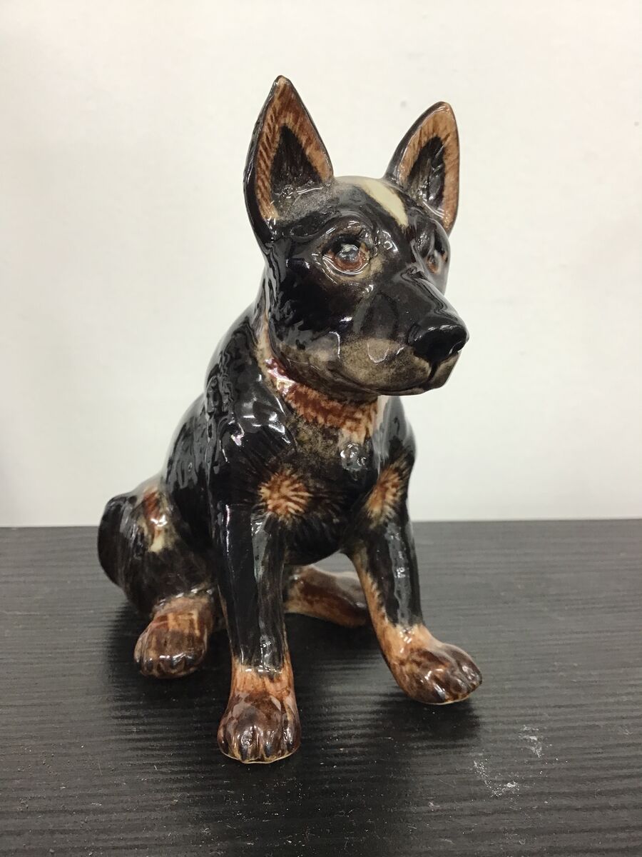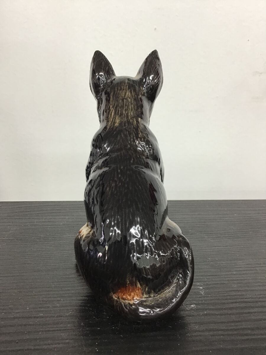 Ceramic cattle dog ornament - hand painted finish. Sitting pose.