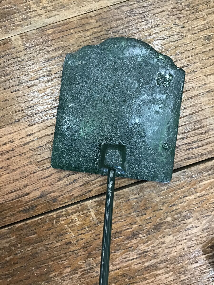 Label measures 8.5 x 7 cm. Spike is 21 cm long.