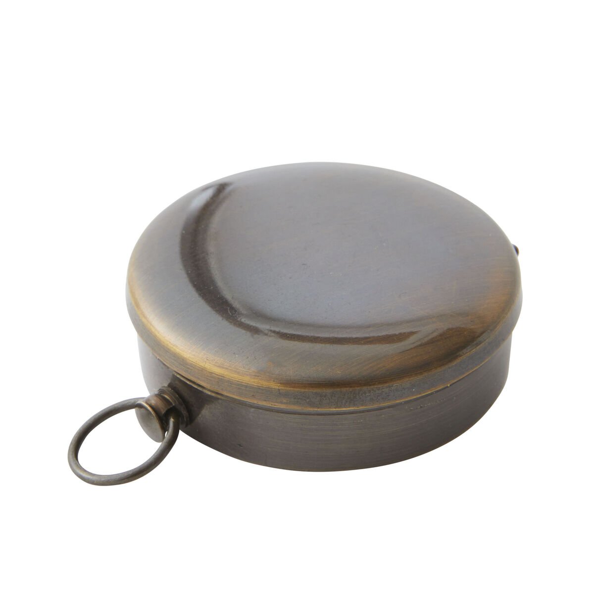Small bronze coated brass pocket compass, with a flip top lid to protect it's glass. Sized to tuck into your pocket or bag.