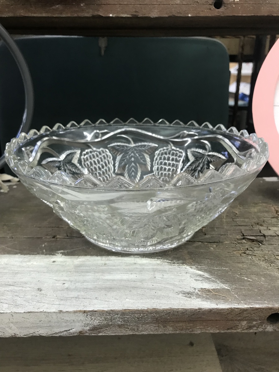 Crown Crystal fruit series serving bowl - strawberrry pattern.