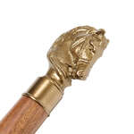 Although this is a brand new item, the horse head handle shows some visible wear to the gold finish, with silver-coloured metal visible beneath in places. The cast metal alloy itself is sturdy and well made, however the decorative finish is prone to wear. The wooden shaft is solid and straight.