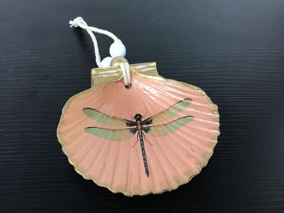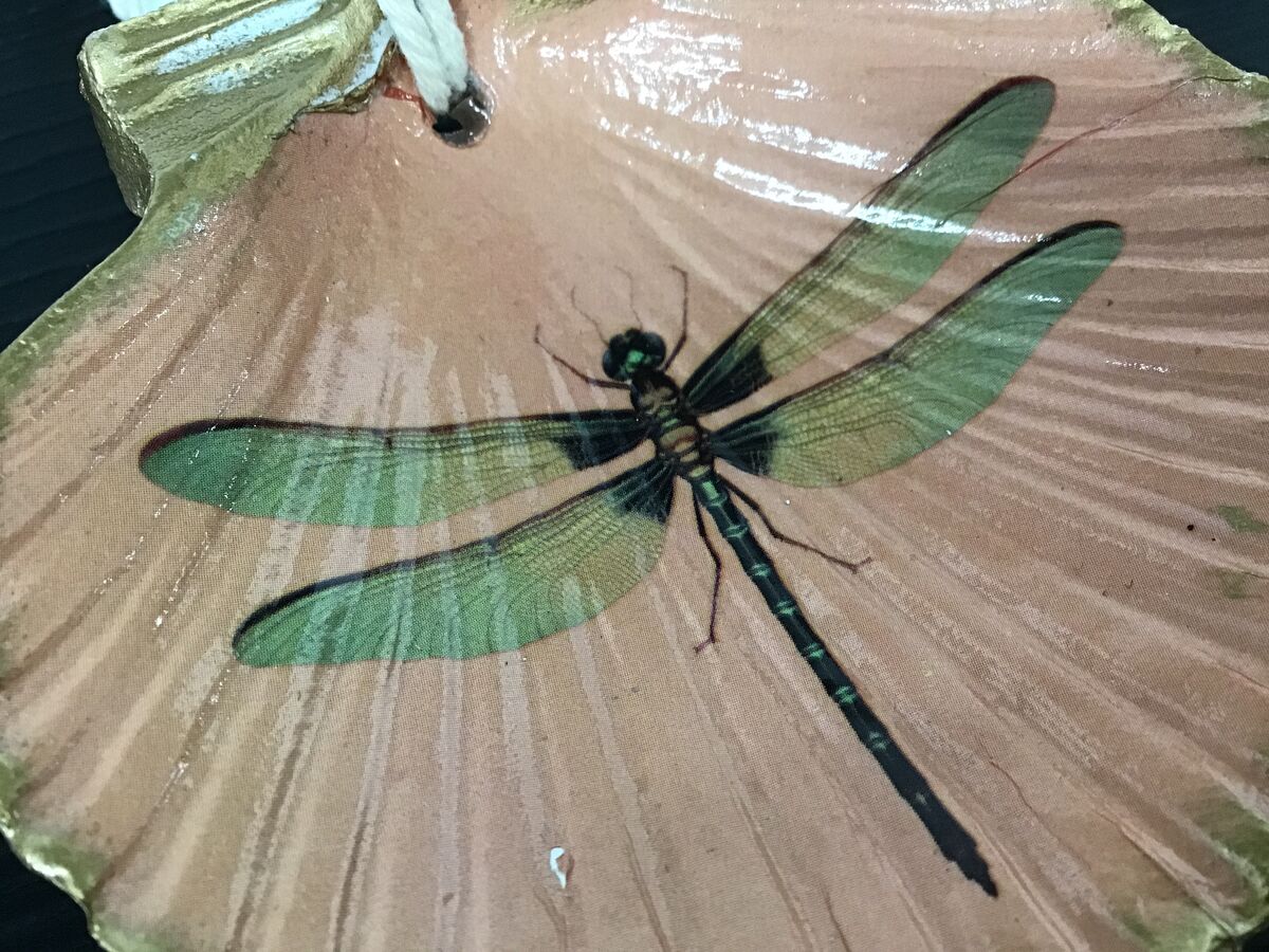 - Pink and gold shell (made from resin) with a finely detailed and anatomically correct dragonfly image overlaid