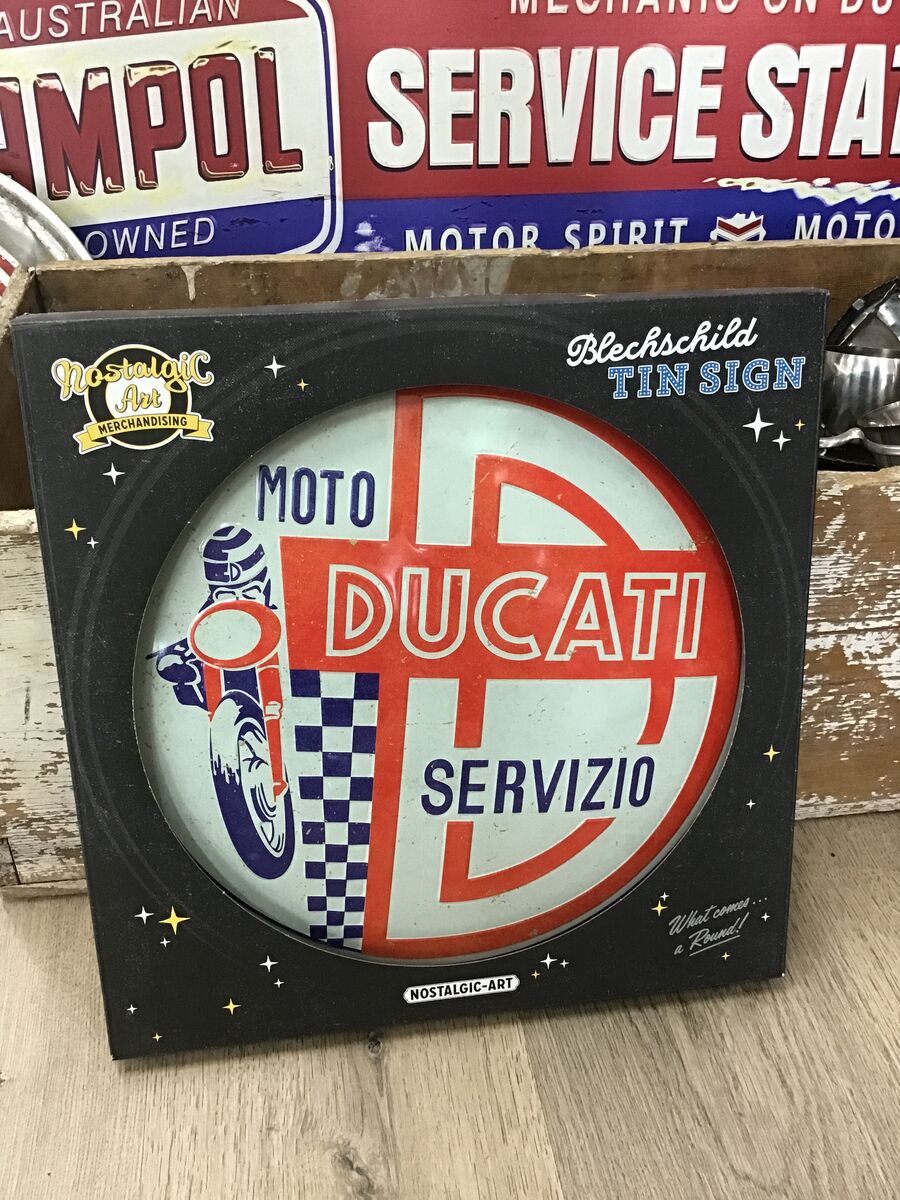 Bring some Italian racing heritage to your walls with this officially licensed Ducati Motorcycles domed tin sign. Perfect for workshops, garages and anyone who lives for red bikes and fast corners.