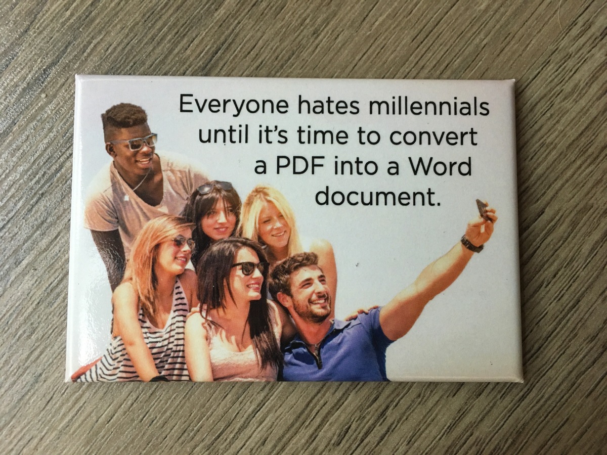 'Everyone hates millennials until it's time to convert a PDF into a Word document'.