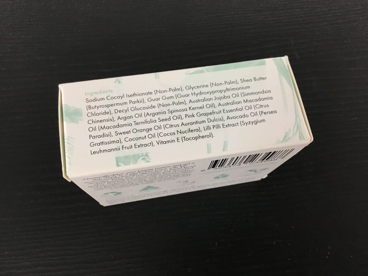 Plant origin glycerine and coconut based cleansers, shea butter, guar gum, decyl glucoside, Australian jojoba, argan and macadamia oils, pink grapefruit and sweet orange essential oils, avocado and coconut oils, lilli pilli extract and vitamin E.