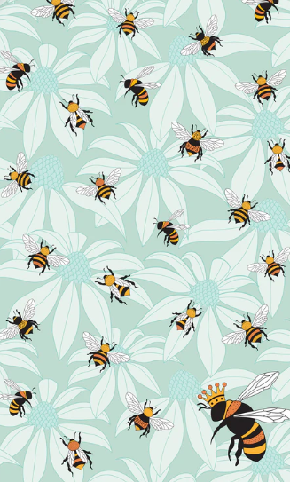 Where blooms meet buzz — this enchanting tea towel pairs soft blue florals with sketch-style bees, including one regal queen in her golden crown, bringing a touch of garden magic to your kitchen.