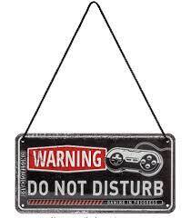 Gaming Warning Do Not Disturb Hanging Tin Sign | Nostalgic Art | 20 x 10 cm | Retro Metal Sign
