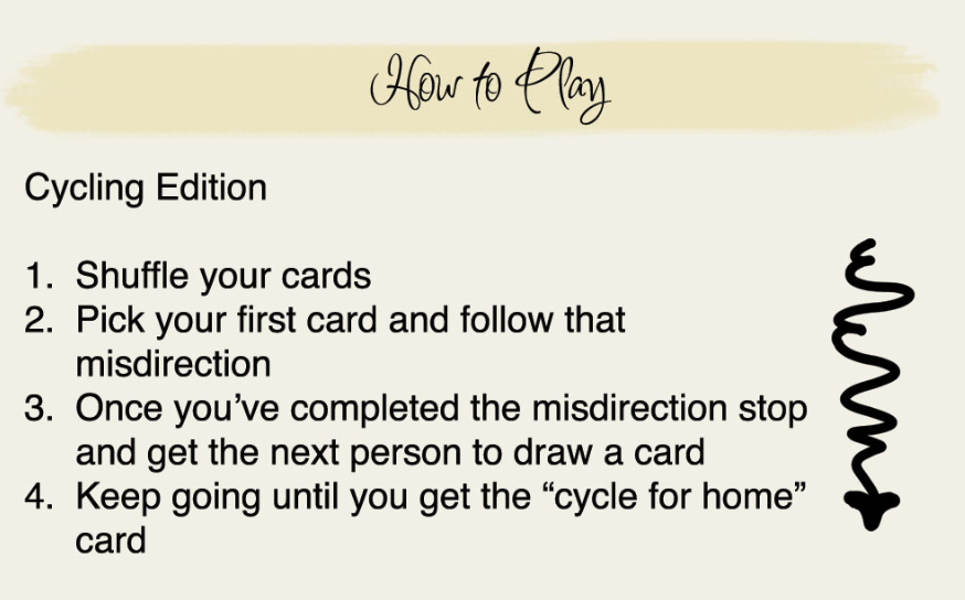 Grab some friends or family, get your helmets on and go for a bike adventure. The Cycling Edition has 26 misdirection cards that give you random directions as you ride so no one knows how the trip will go or where you will end up.