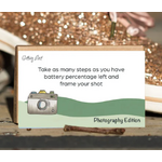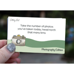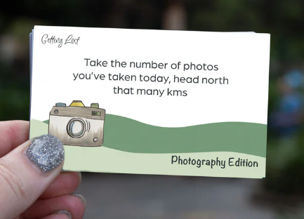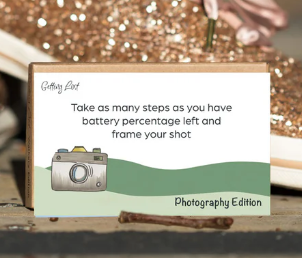This game gets photographers who want to find new and unique things to shoot out to truly random spots. The Photography Edition caters to all types of photographers with “just for fun” directions on one side for phone shooters and “pro” directions on the other side for cameras with manual settings.
