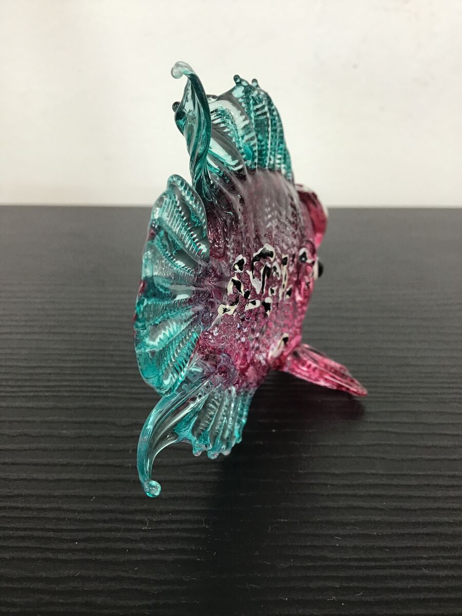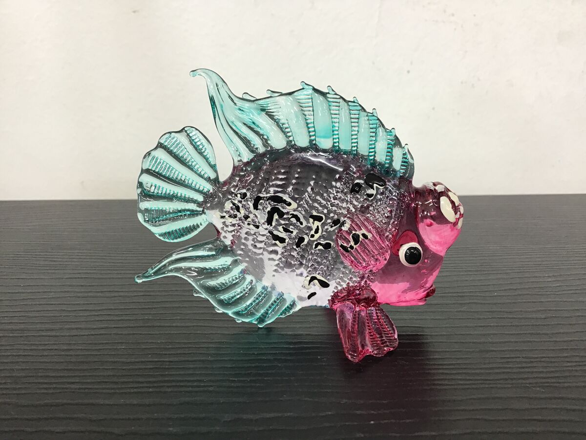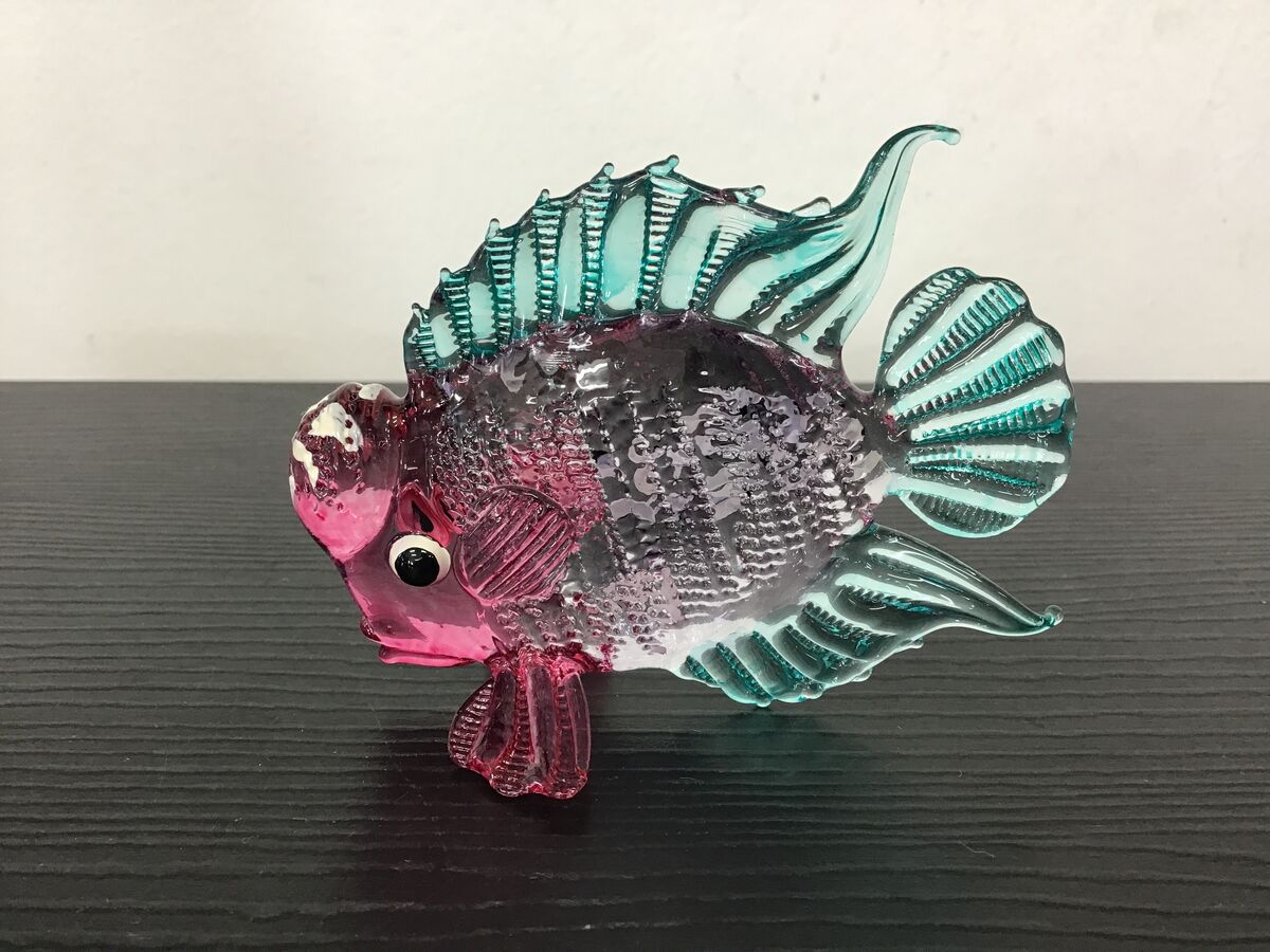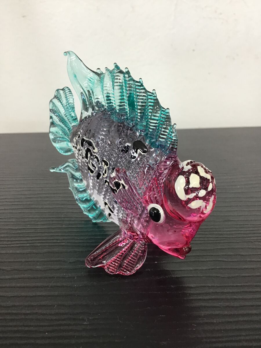 Beautiful hand blown glass fish - hand painted dot detail. Blue and pink colouring.
