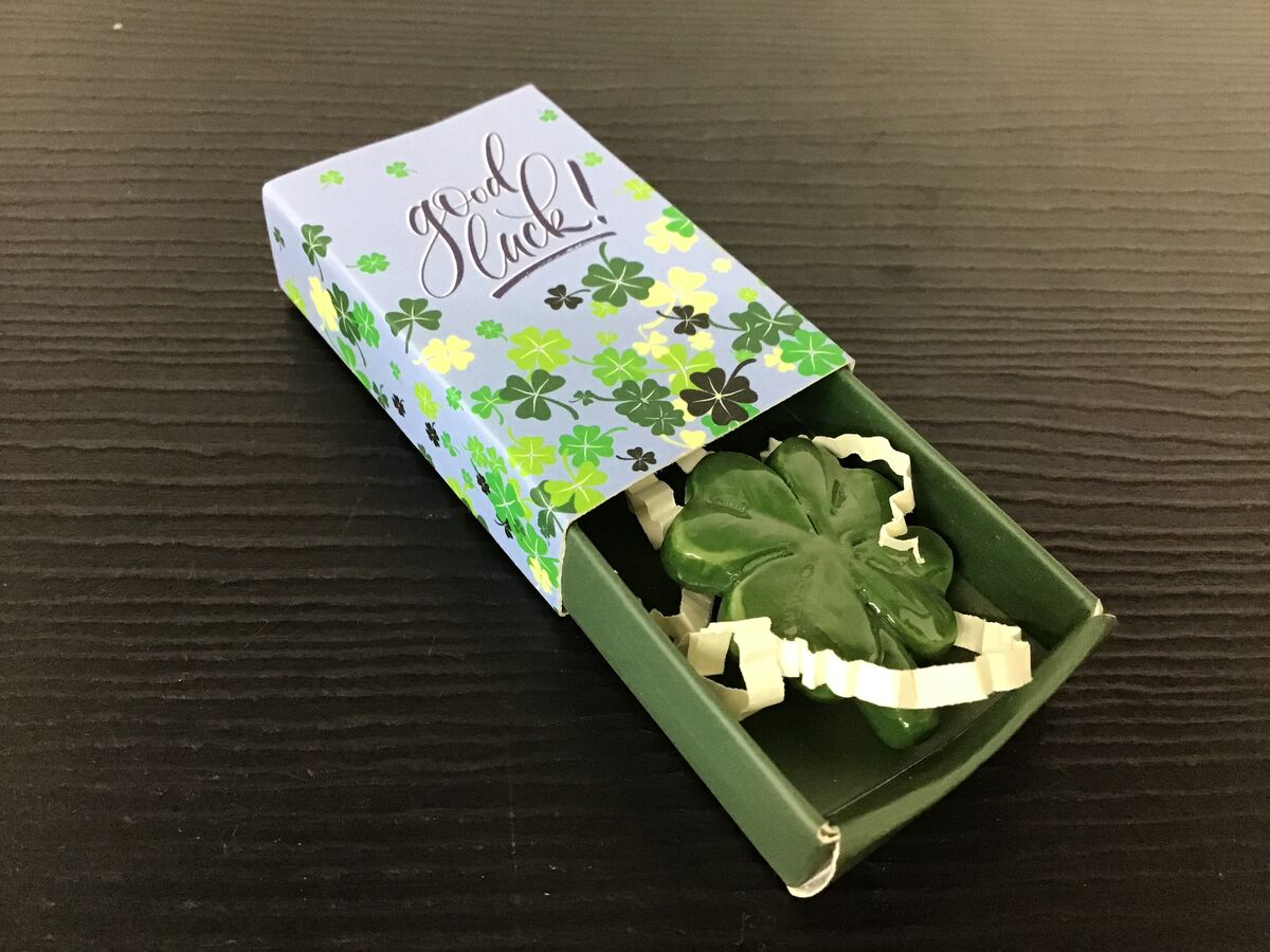 Wish someone luck with this cute ceramic four-leaf clover in a matchbox – a thoughtful good luck gift or lucky charm for exams, new jobs, or life changes.