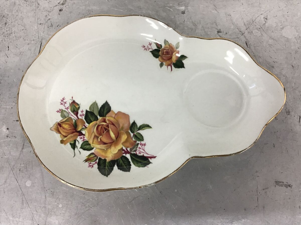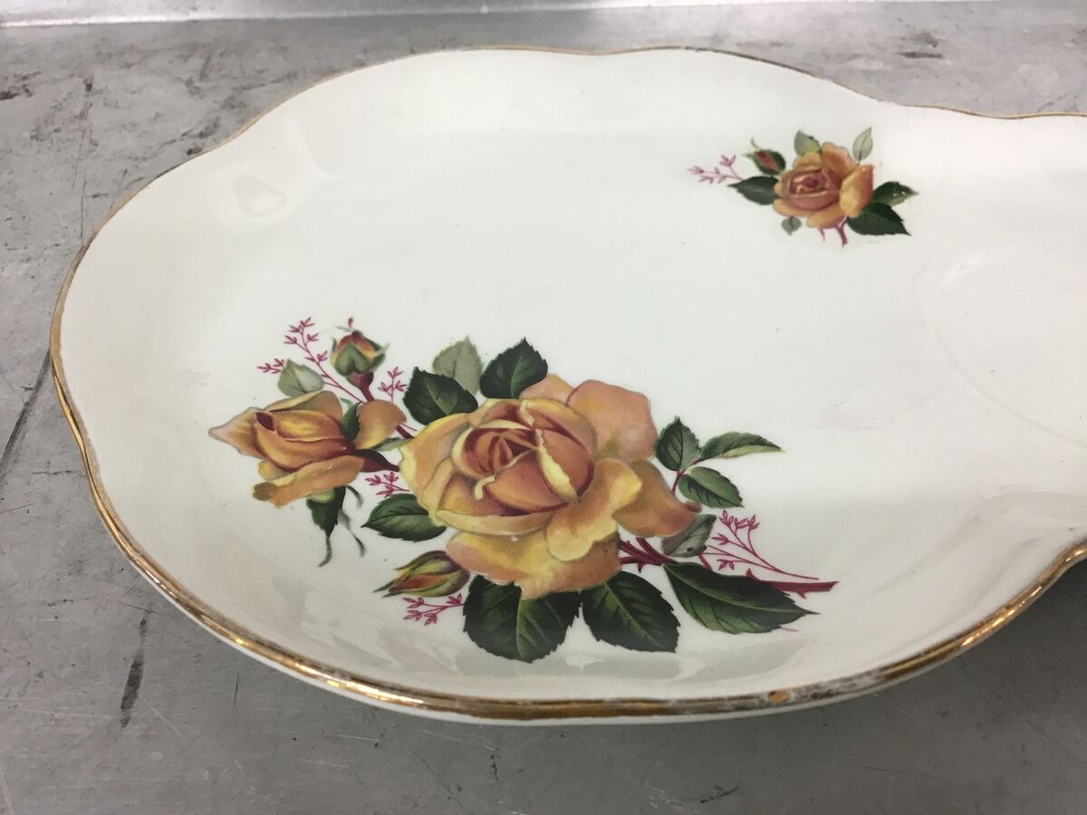 James Kent Old Foley tennis saucer plate with a yellow rose motif.