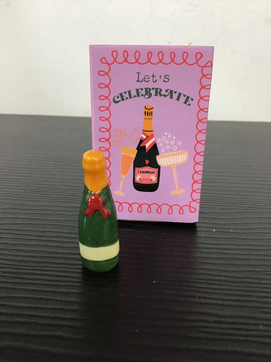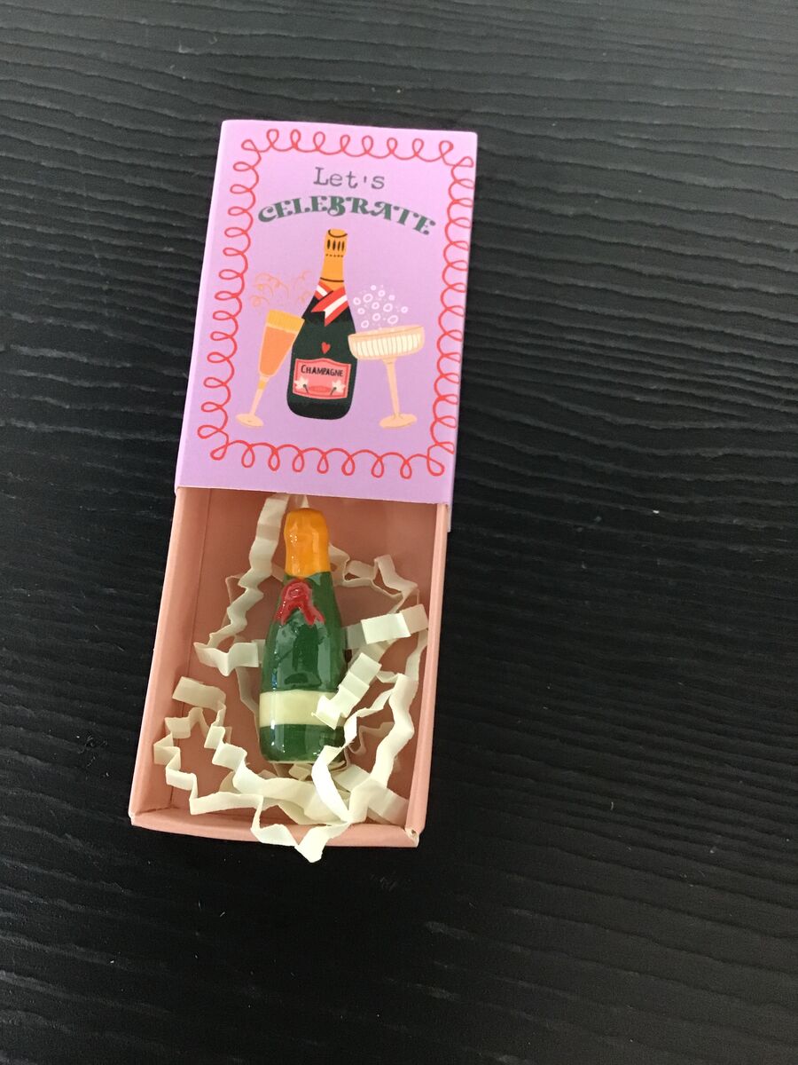 A tiny celebration in a box! This matchbox holds a miniature ceramic champagne bottle – a perfect keepsake gift for birthdays, weddings, or new jobs.