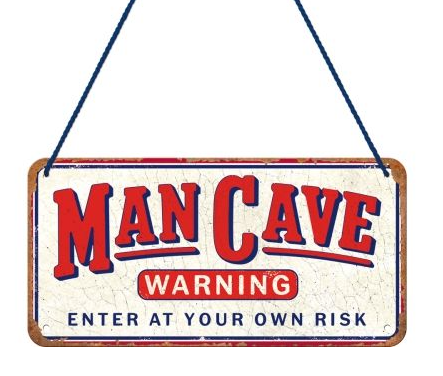 Hanging tin sign, 'Man Cave - Warning - Enter At Your Own Risk'