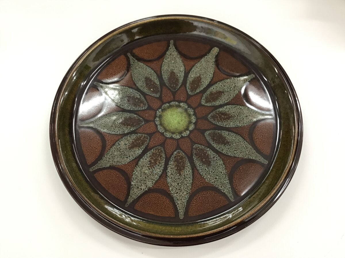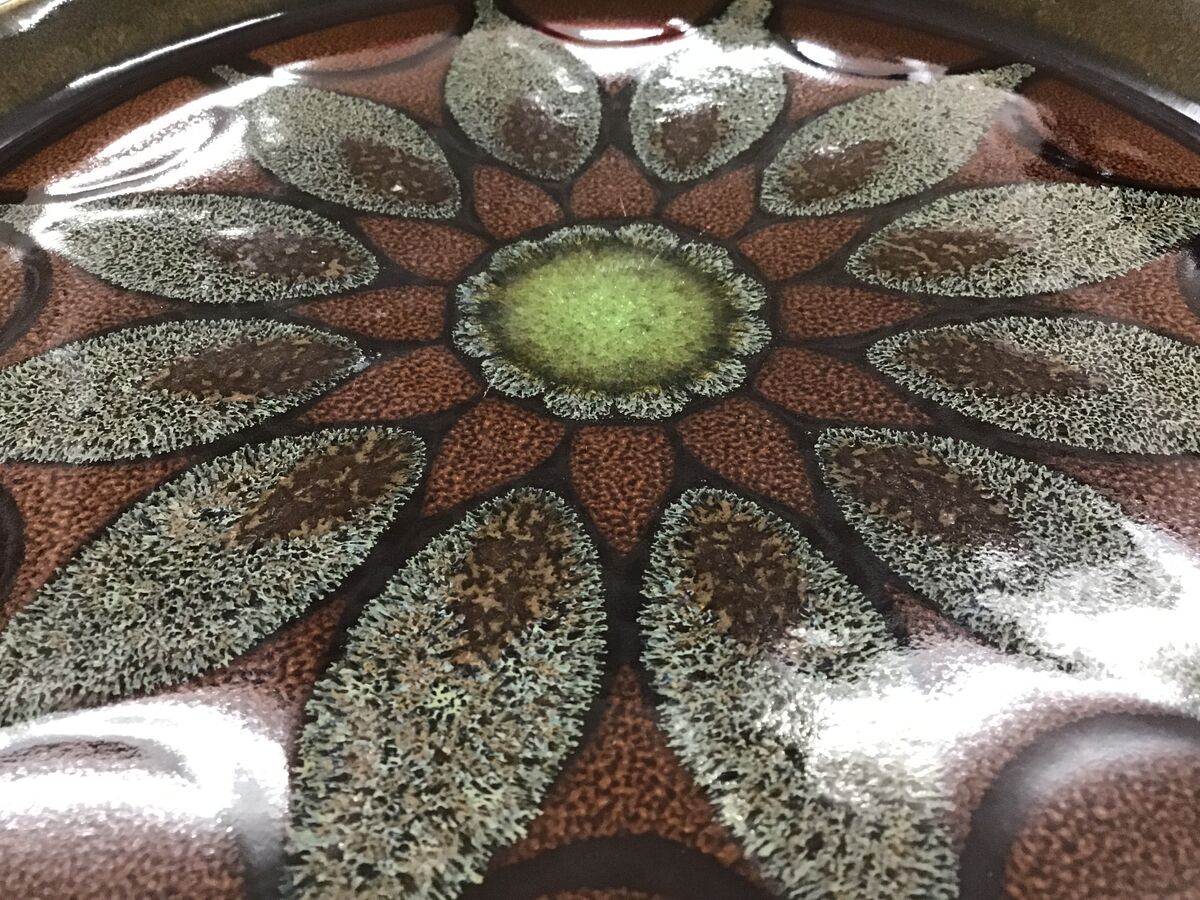 - Interesting glaze effect with mostly brown and green tones.