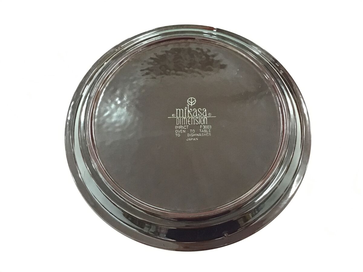 Retro Mikasa Japan stoneware dinner plate, 'Dimension Impact No F3003'.