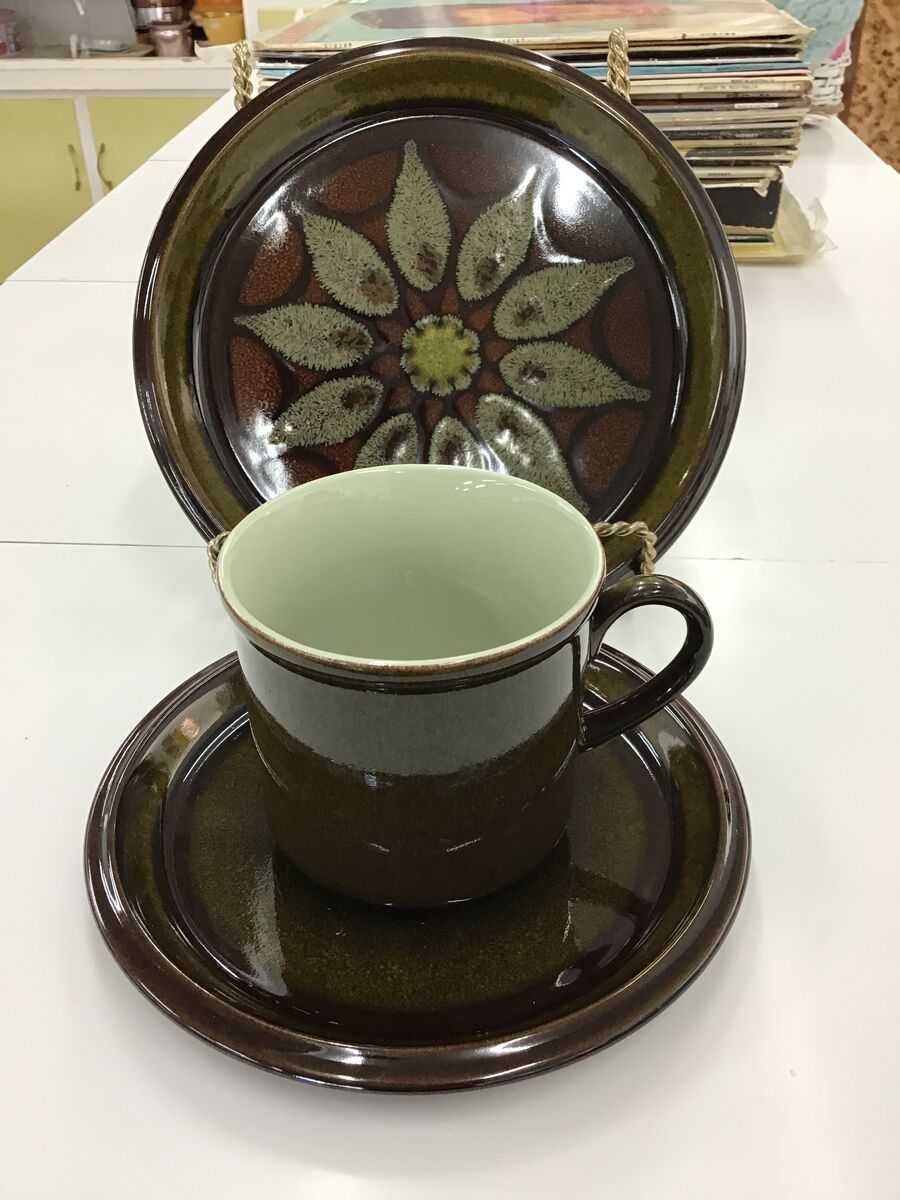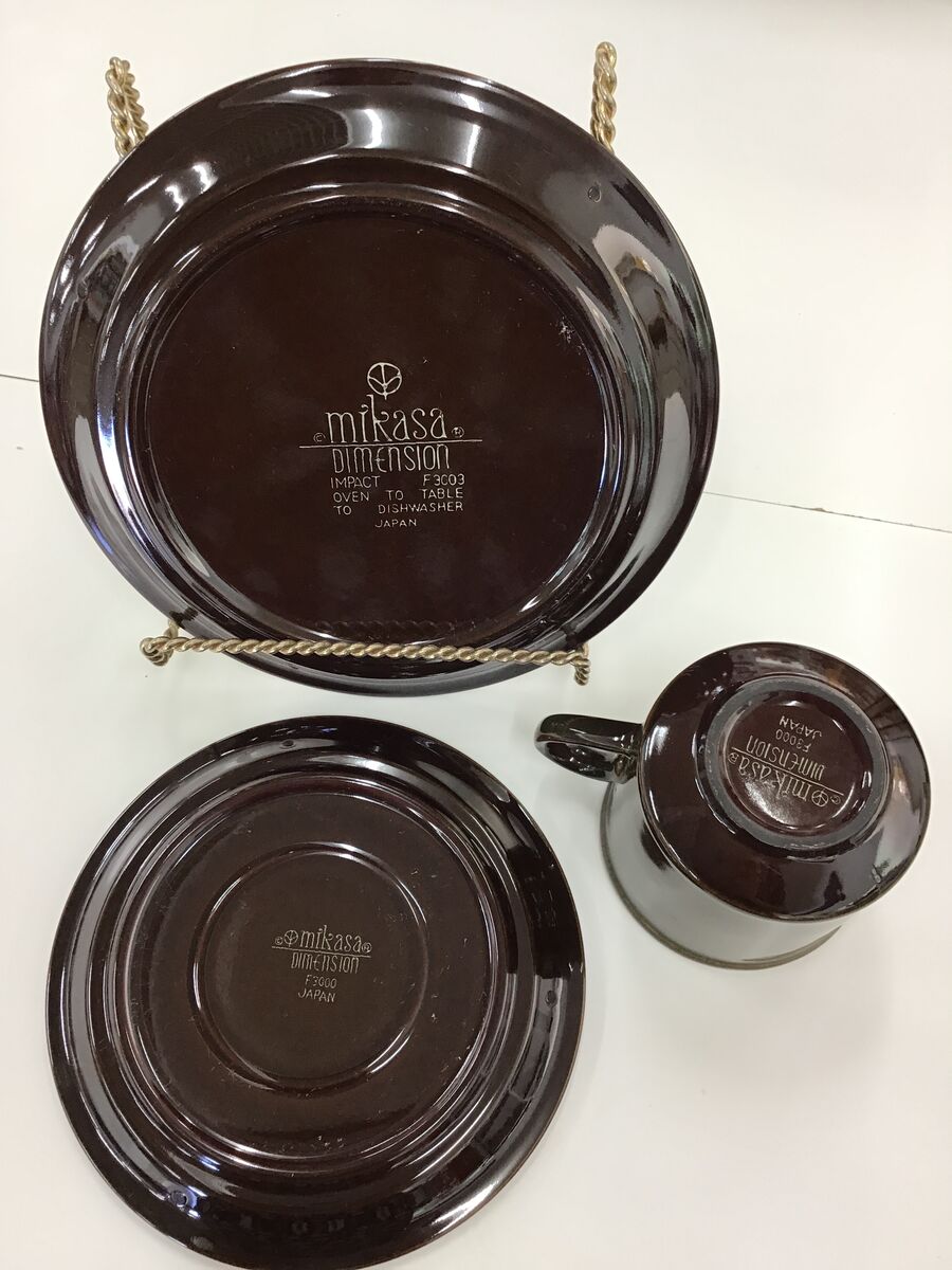 Mikasa Japan stoneware tea cup trio, 'Dimension Impact No F3003'.