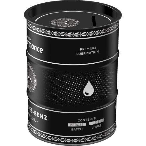 Keep your coins as tidy as your car collection with this Mercedes Benz oil barrel money box tin.