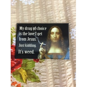 'My drug of choice is the love I get from Jesus. Just kidding. It's weed'.