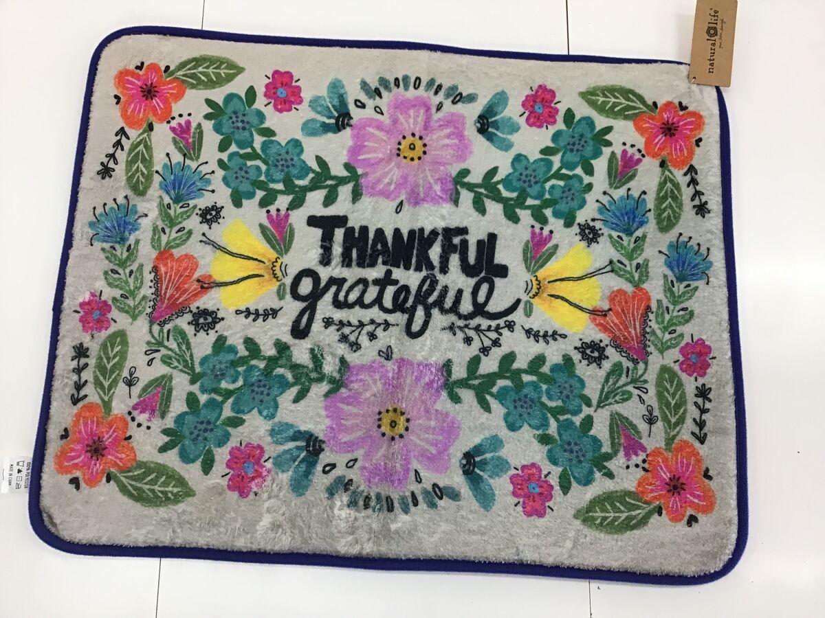 - Two sided folk art design, one with the words 'Thankful Grateful', the other with boldly coloured flowers