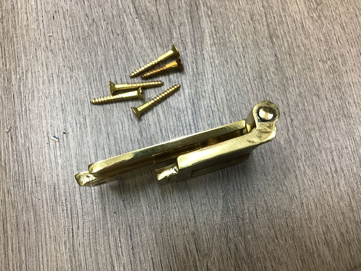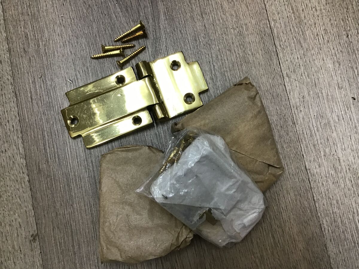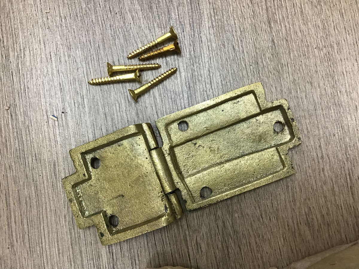 Lot of 4 solid brass offset cabinet hinges with screws: