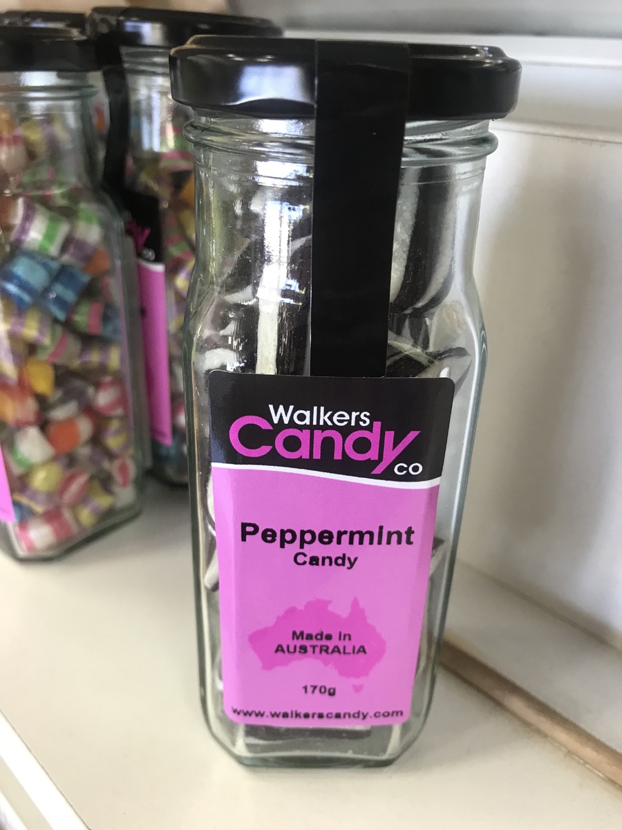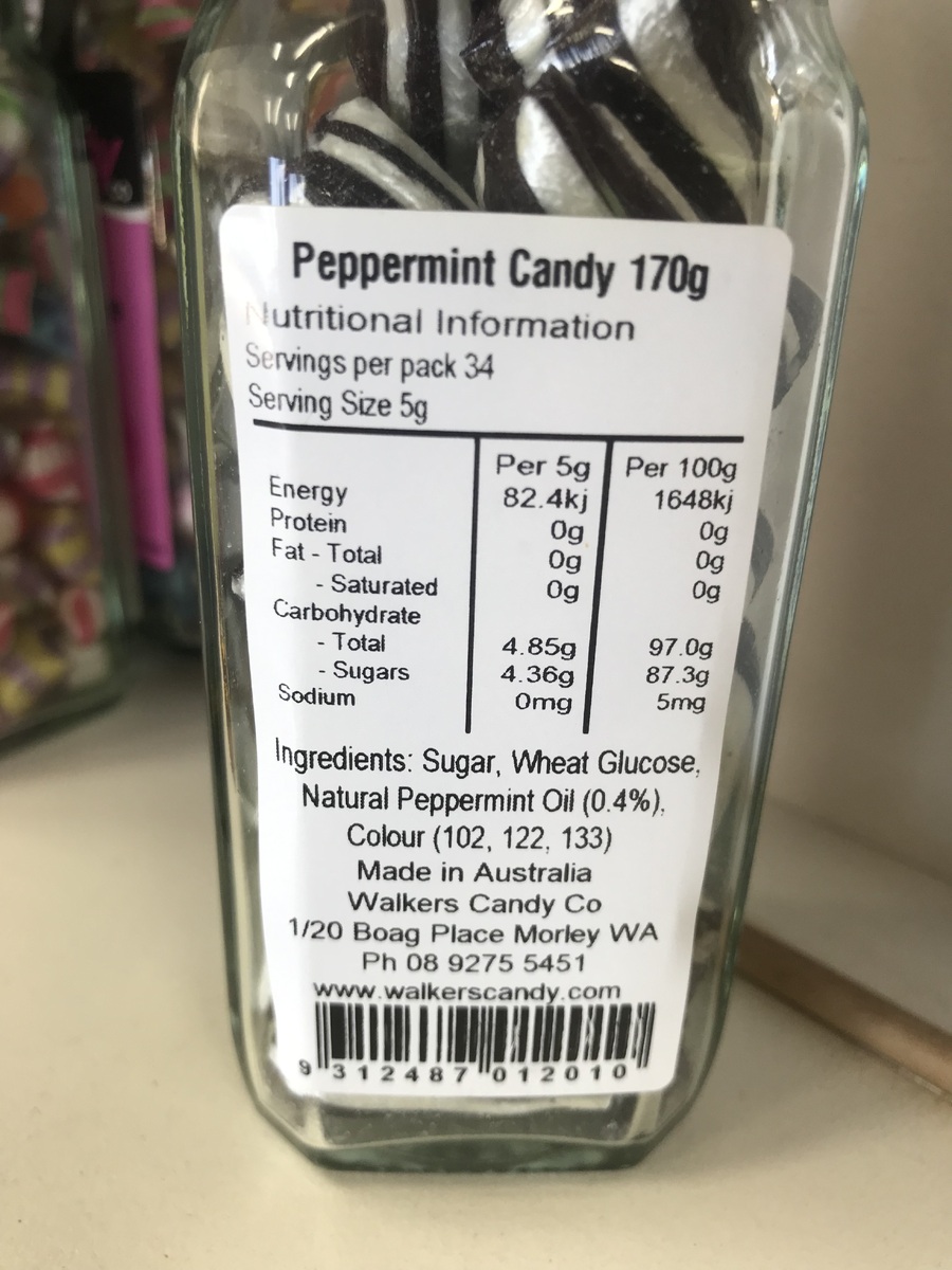 Sugar, wheat glucose, natural peppermint oil (0.4%), colour (102, 122, 133).