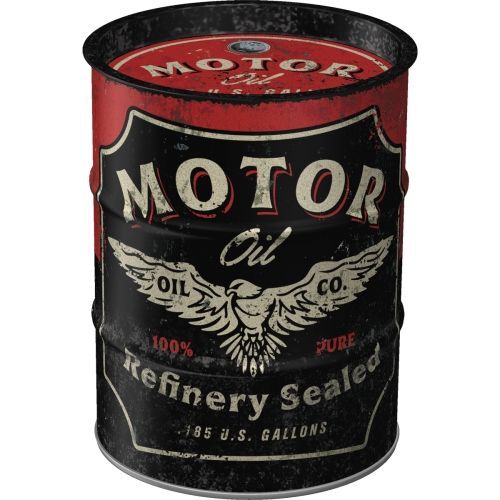 Add a touch of industrial retro charm to your space with this classic oil barrel money box tin.