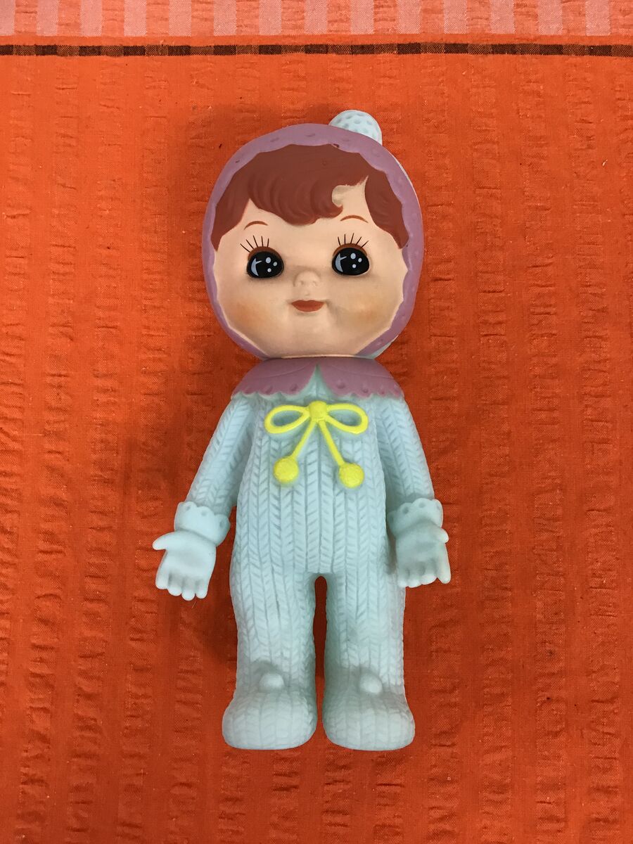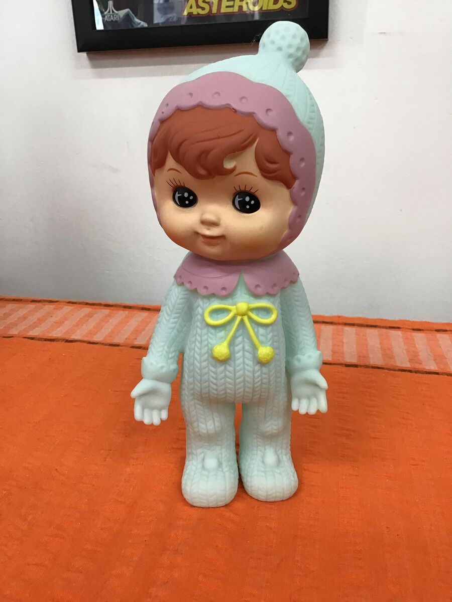 Retro style vinyl doll with a kitschy face that is hard to resist!