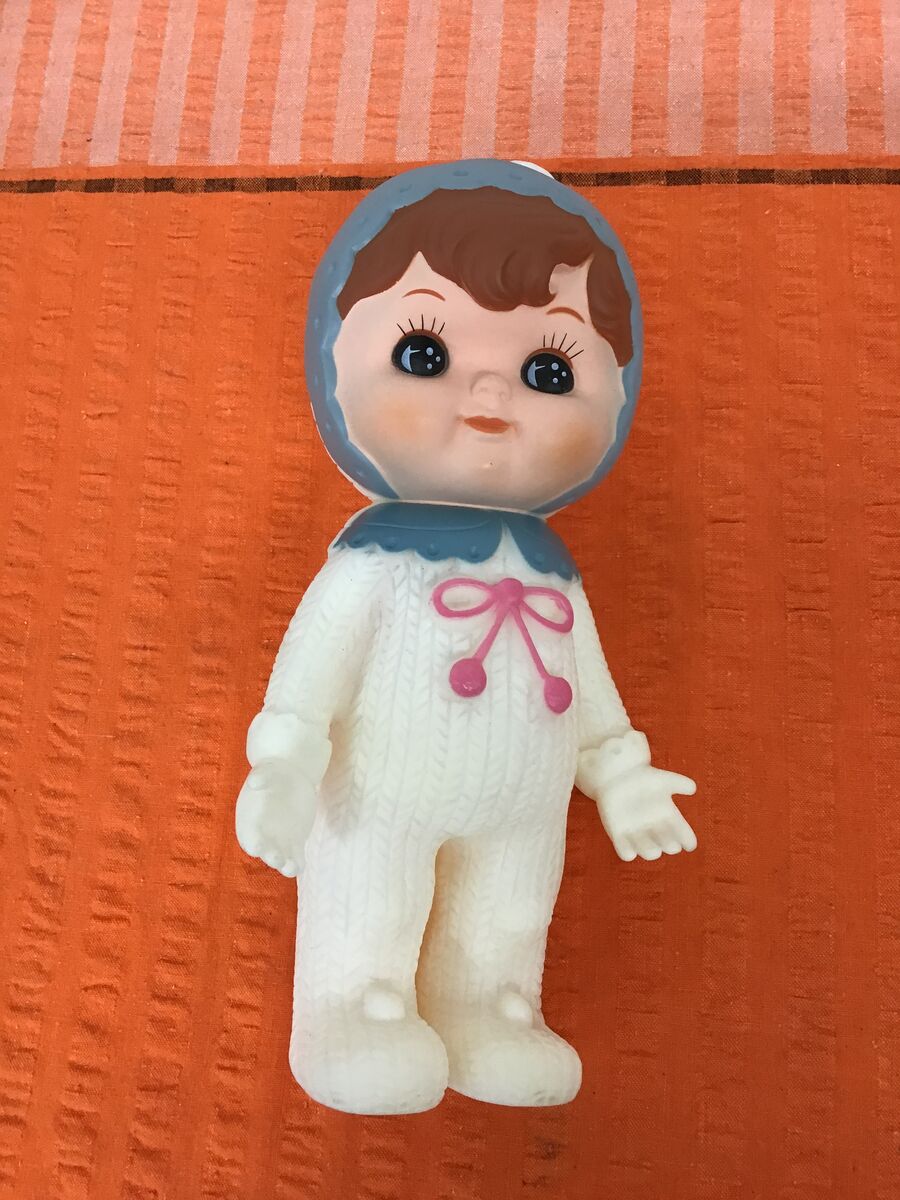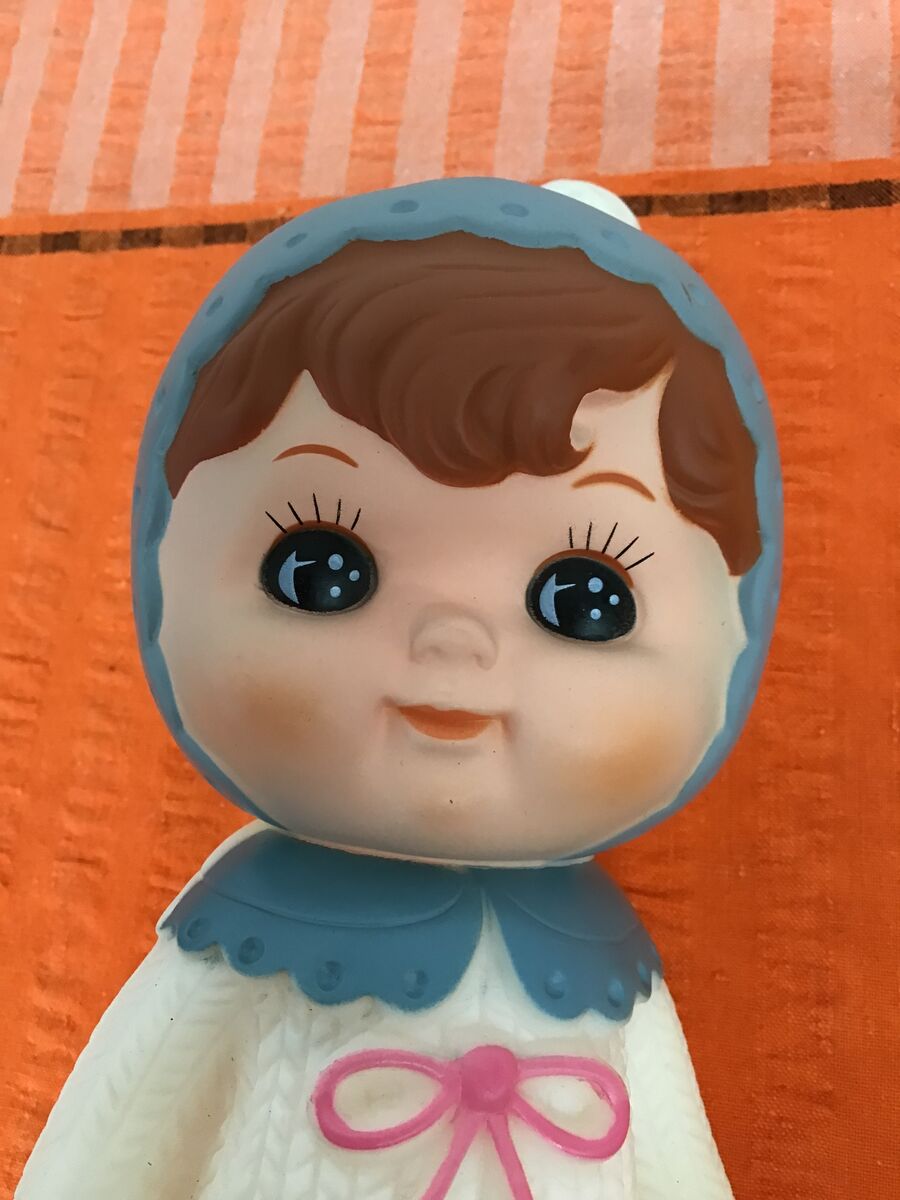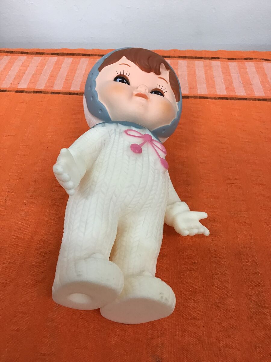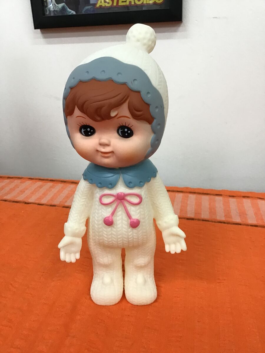 Retro style vinyl doll with a kitschy face that is hard to resist!
