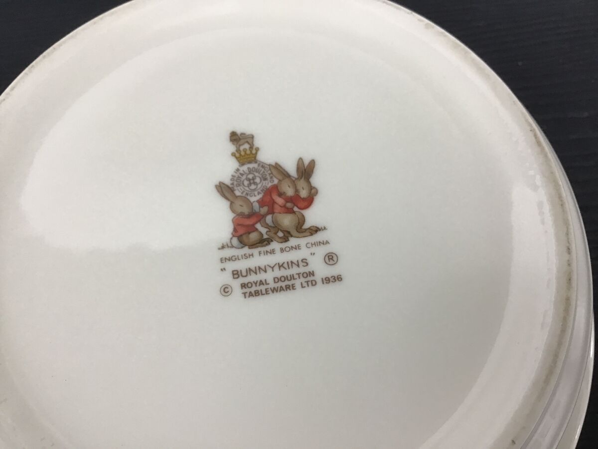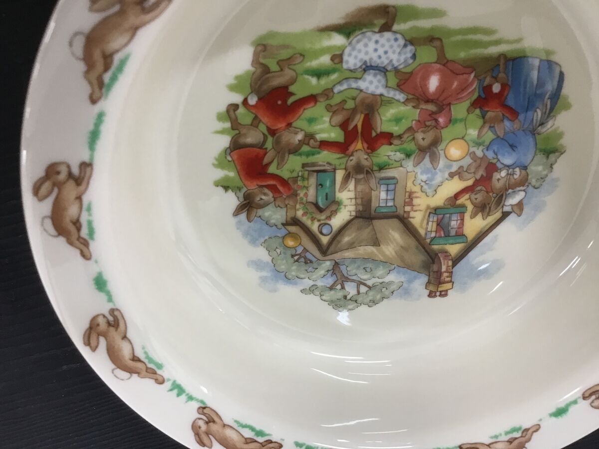 Royal Doulton 'Bunnikins' rimmed bowl, 'Family in the Garden' design.