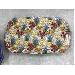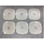 - One large rectangular serving plate and 6 small ornate square shaped side plates